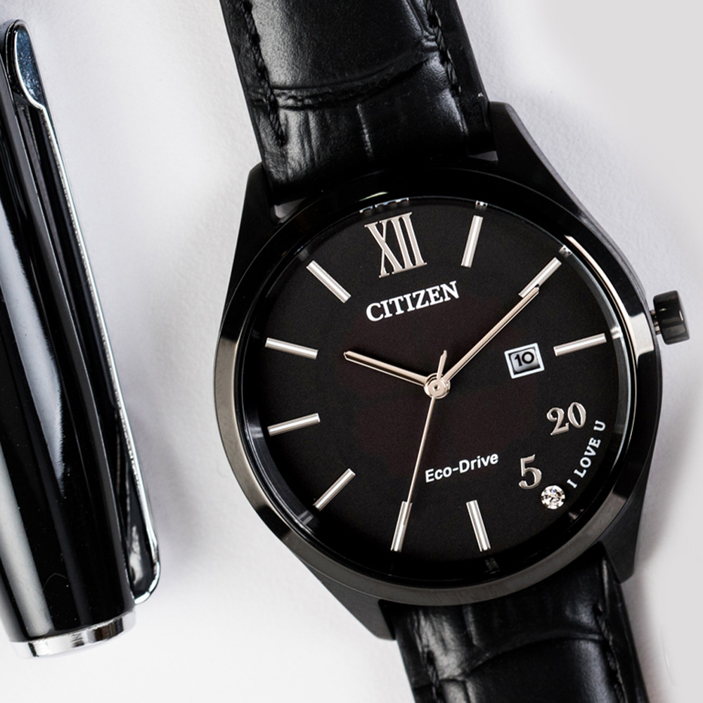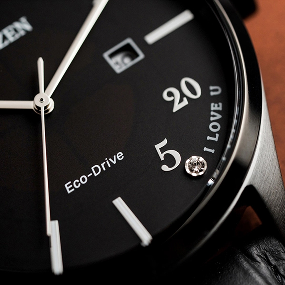 CITIZEN Eco-Drive光動能精準對時,讓您準確的安排時間。 簡約設計錶款,是簡單即為永恆的最佳證明, 520 刻度設計低調象徵我愛你,每一天都值得被紀念!