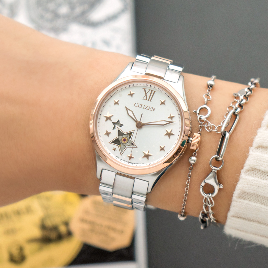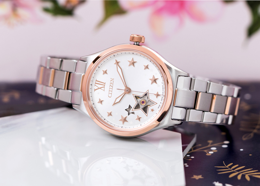【和別人不一樣的星空】 星光熠熠閃耀錶面 今晚的夜空將雋永的時間刻印,鎖入腕間釋放優雅 五芒星鏤空開芯設計 為妳點亮目光中的期待,就在戴上的那一刻 流光金星空 氣質款機械腕錶《PC1009-78B》
