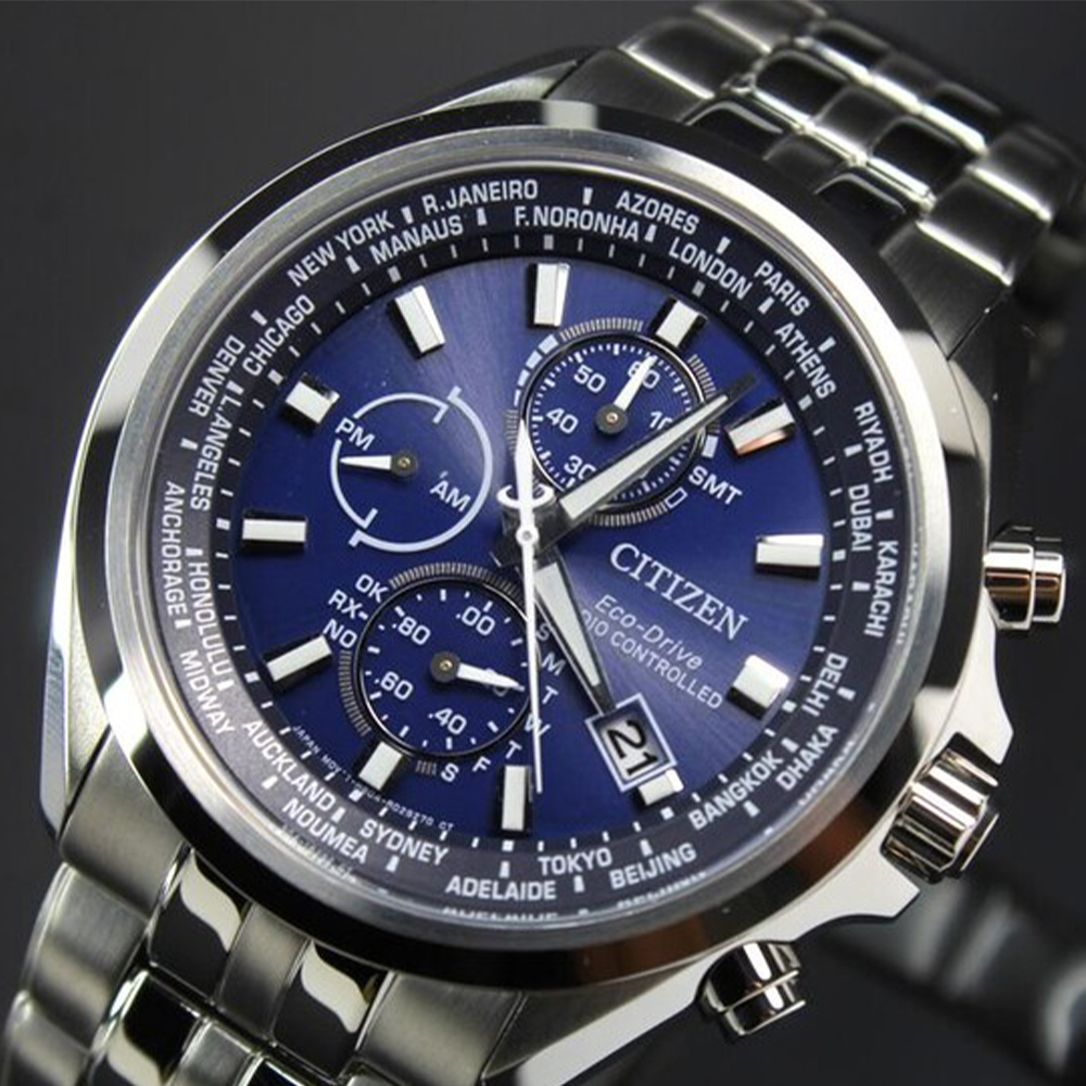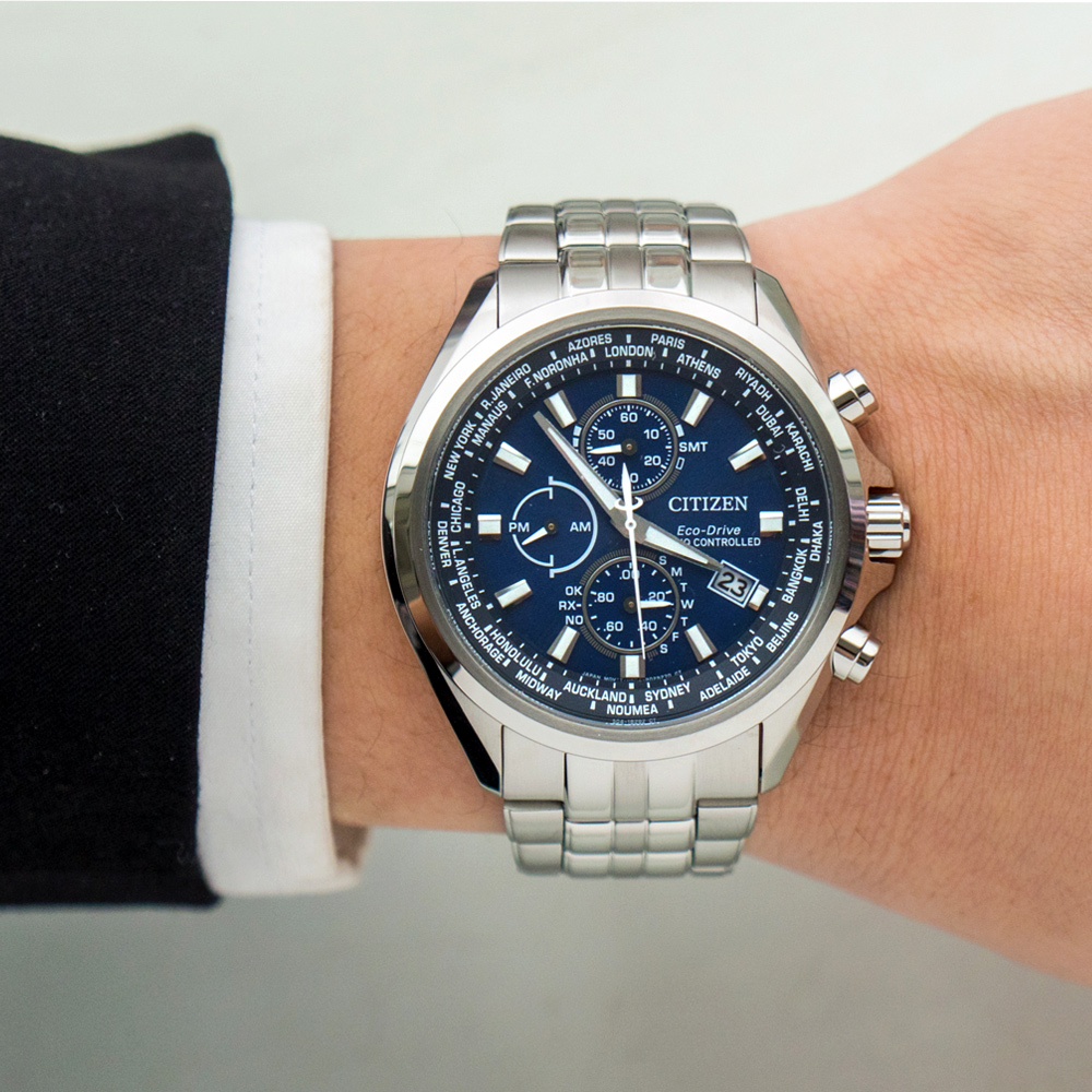 秉持品牌最重視的「精準」、「迅速」的經典光動能電波時計錶款, 電波時計錶款的精準可靠已是不言可喻, 更令人讚嘆的是提供時區的調整,讓您翱翔26個時區、腕間抵達, 面盤上立體刻度坐落於四方,透露著擁有這款的收藏家,可遨遊四方,完成更多挑戰,成就非凡的國際視野。