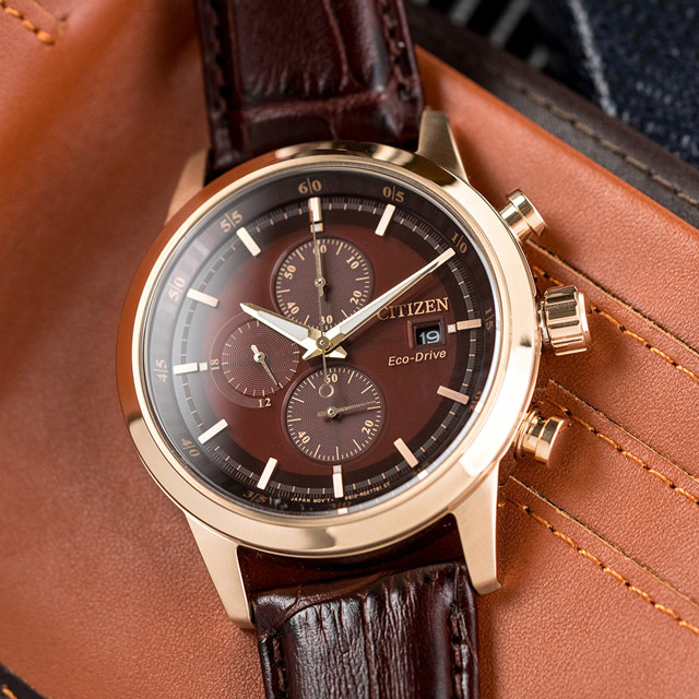 CITIZEN 星辰 錶 CA0612-14X Eco-Drive 時尚沉穩光動能三眼真皮腕錶