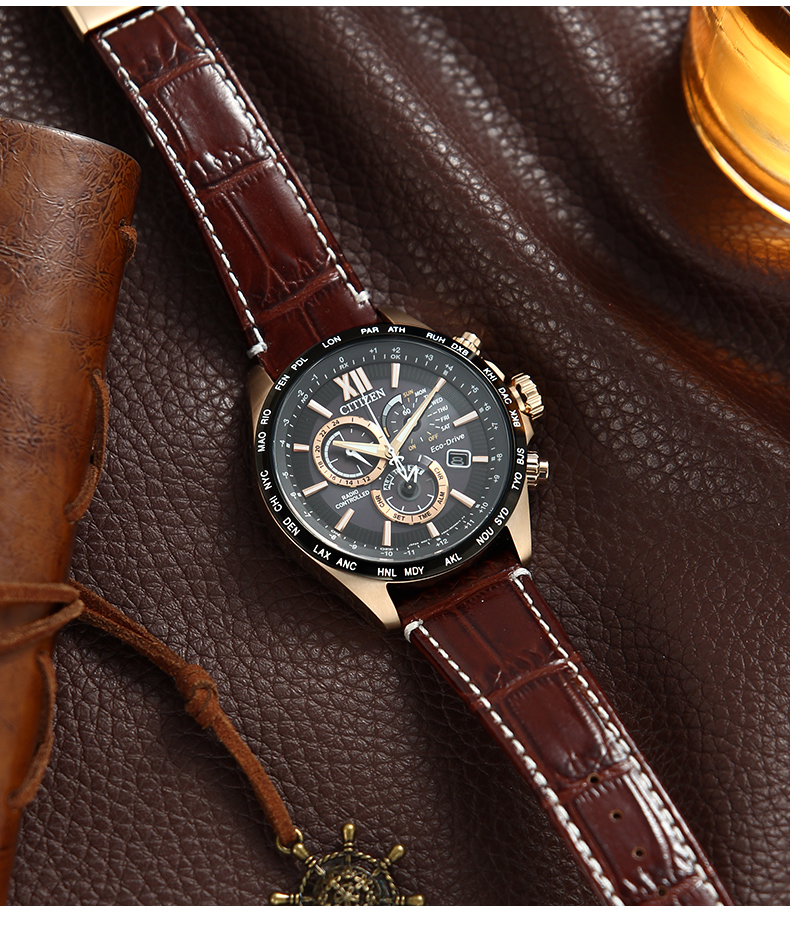 Eco-Drive 光動能是CITIZEN高科技的代表作 引以為傲的製錶技術,更是都會時尚的首選之一 運用任何光源推動腕錶運行,毋須更換電池 五局電波接收(美國,歐洲,日本-東西,中國) 撞擊偵測/指針修正/定時自動收訊功能/JIS1型防磁 世界時間/夏令時間/萬年曆/日期星期顯示/電力顯示 搭載藍寶石水晶鏡面,百米防水。