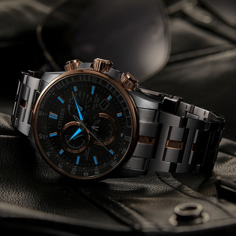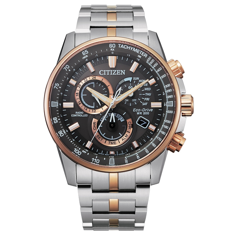 Eco-Drive 光動能是CITIZEN高科技的代表作 引以為傲的製錶技術,更是都會時尚的首選之一 運用任何光源推動腕錶運行,毋須更換電池 五局電波接收(美國,歐洲,日本-東西,中國) 撞擊偵測/指針修正/定時自動收訊功能/JIS1型防磁 世界時間/夏令時間/萬年曆/日期星期顯示/電力顯示 搭載藍寶石水晶鏡面,200米防水。