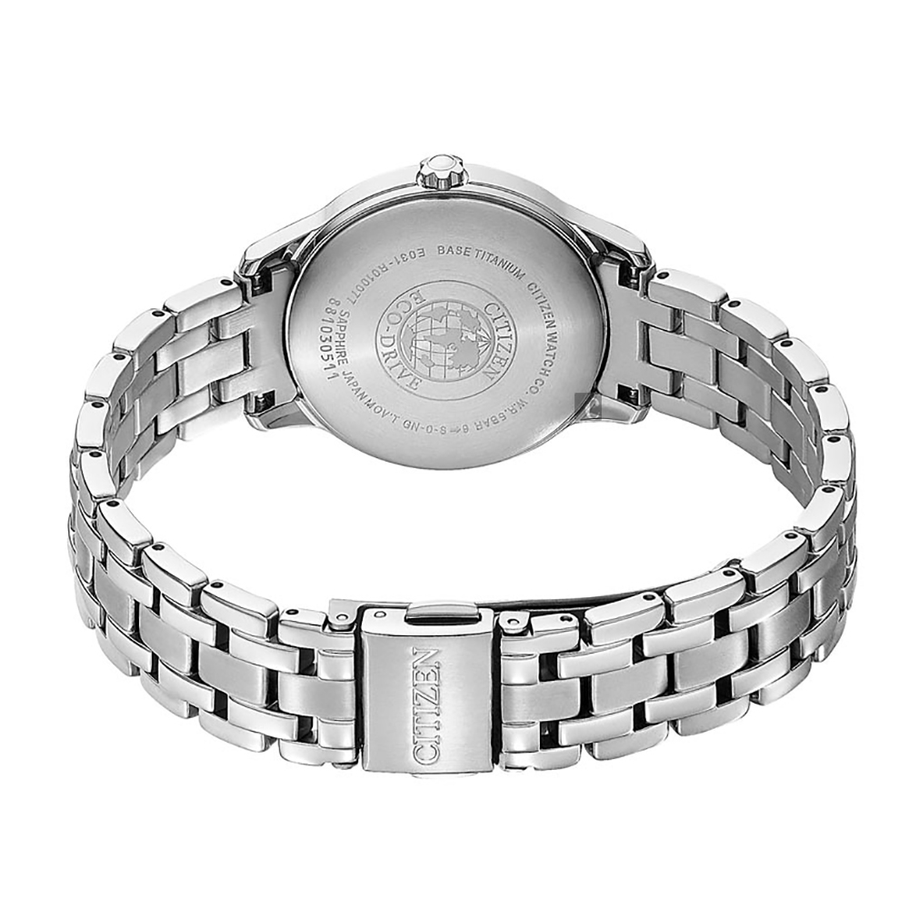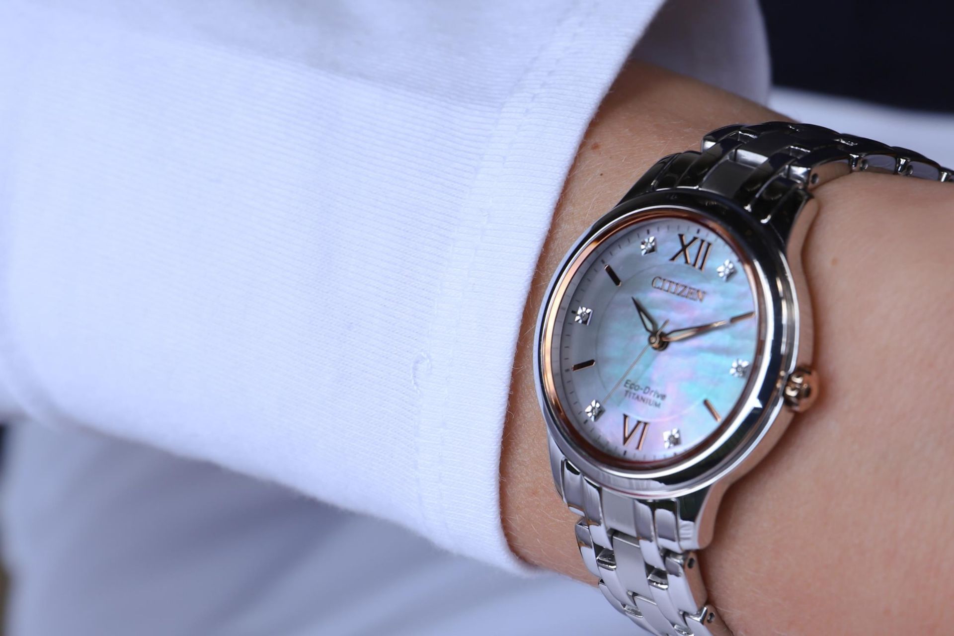 Eco-Drive 光動能是CITIZEN高科技的代表作 引以為傲的製錶技術,更是都會時尚的首選之一 運用任何光源推動腕錶運行,毋須'更換電池 時標鑲嵌真鑽,珍珠貝錶盤展現柔美氣質 營造設計感氛圍,整體錶身流暢曲線 襯托自信大方氣質,百搭適合任何場合配戴 卓越優質的品味。
