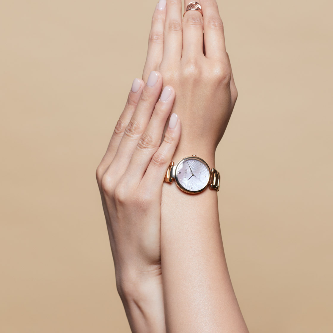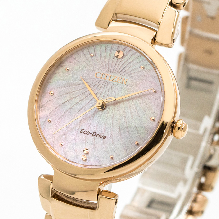CITIZEN L的品牌概念「純粹之美」,美麗不是因外在的華麗裝飾, 而是由內在心靈的美散發至外貌的,女性腕錶也應如此,內斂而富含知性。 優雅波紋錶盤設計,搭載藍寶石水晶鏡面 CITIZEN L的腕錶沒有過於華麗的裝飾,取而代之的是為了人或環境而著想的 製作方式及素材,加上搭載CITIZEN光動能技術,讓消費也成為能為環保盡一份力, 也增加使用者對於商品使用的自信,新的腕錶在哪裡,妳的美麗就在哪裡誕生。
