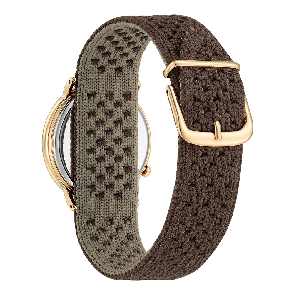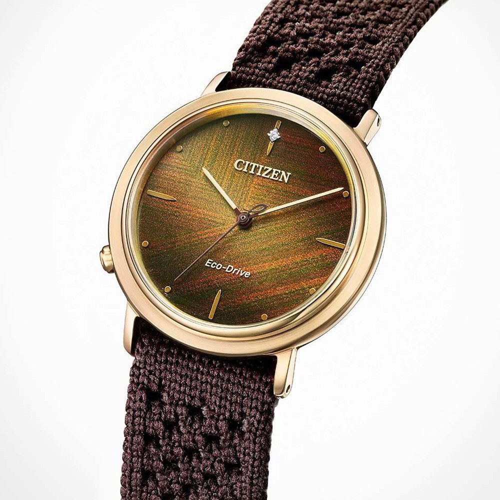 2022 年,CITIZEN L 慶祝誕生 10 週年。CITIZEN L 腕錶一直走在可持續發展最前線,旗下的朧月系列新發佈之四款腕錶旨在傳遞人與自然和諧共存的信息。四款全新腕錶的設計靈感來自四大元素 — 土、水、火、氣,充分體現了地球自然之美及其孕育萬物生命的自然力量。 全新腕錶的設計過程由生物學家 Shin-Ichi Fukuoka 博士親自監督。設計結合了仿生學原理,從生物的結構和自然之美中汲取靈感,創造出更完美的手錶,外觀漂亮且佩戴舒適。 輕便舒適的針織錶帶模仿大海海綿的多孔結構設計,可輕鬆排汗。該系列採用名為 ECOPET®*4 的聚酯纖維,這種材料由回收的衣服和廢棄塑料瓶製成。錶帶採用 WHOLEGARMENT®*5 針織技術,製成可手洗的材質,紋理為多孔結構,具有出眾的伸縮性和耐用性。 錶盤採用名為結構色墨水®*6 的創新技術,這項技術由 FUJIFILM 公司開發,呈現了大藍閃蝶和其他種類生物的翅膀上看到的結構生色現象。錶盤上的色彩並非以傳統顏料印製 — 只有光線照射在錶盤的微結構時才會出現令人驚嘆的色彩。 全新可持續系列腕錶於 CITIZEN L 的 10 週年之際亮相,每款腕錶都從大自然汲取靈感,展現地球自然之美。
