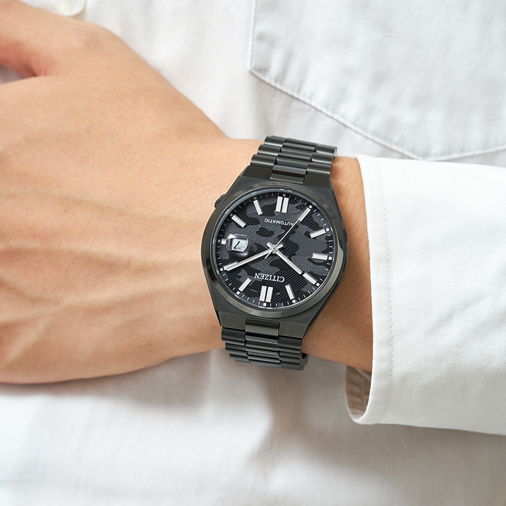 現代感以及時髦摩登外型,是這個系列最重要的設計理念 黑色迷彩錶面,搭載自動上鍊機械錶,具備日期顯示 不鏽鋼錶殼錶帶,藍寶石水晶鏡面 日系領導品牌,實用兼具時尚的設計,卓越優質的品味。