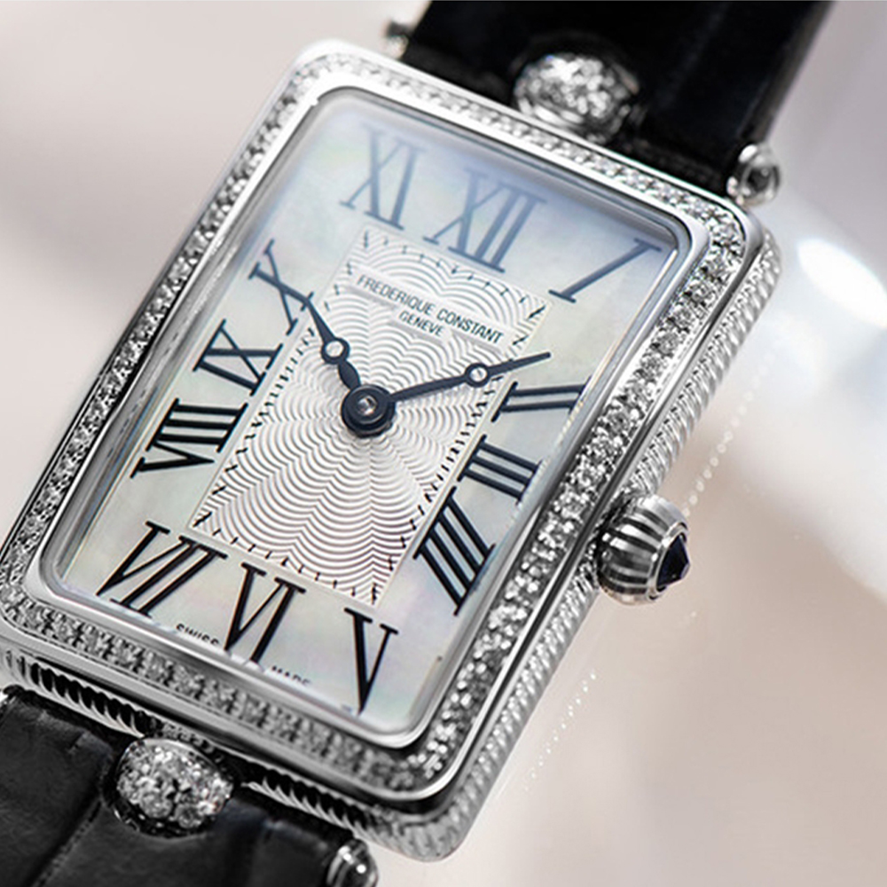 康斯登經典藝術系列,永恆的古典主義,比例協調相當精緻 外殼也略微彎曲,以完美貼合手腕的輪廓,完美地展示了手腕的優雅 與柔美氣質的珍珠母貝錶盤相結合,錶冠上有凸圓形寶石 專為現代尊貴女性的日常著裝而設計,配備康斯登石英機芯