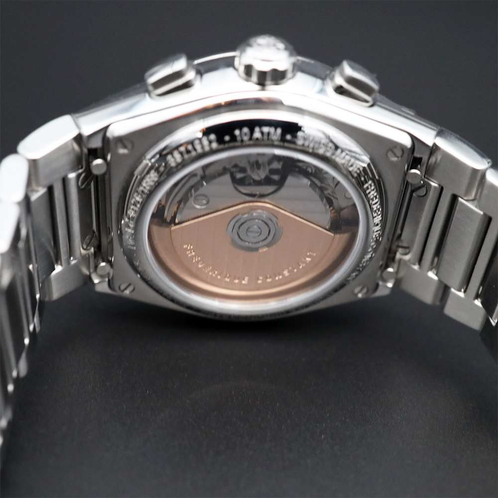 3 點鐘位置有 30 分鐘計時盤,銀色指針