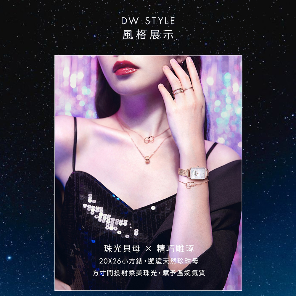 Daniel Wellington DW00100578 玫瑰金殼珍珠母貝面方型米蘭腕錶