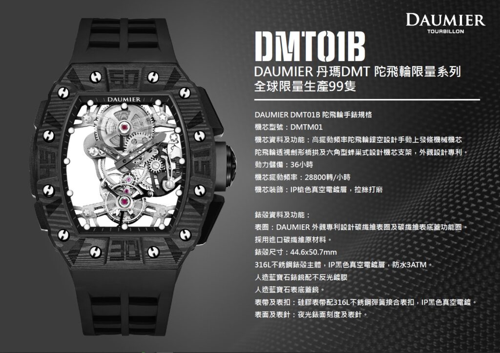 DAUMIER 丹瑪陀飛輪限量系列 數字黑 DMT01B 瑞士錶 陀飛輪錶 錶 丹瑪錶