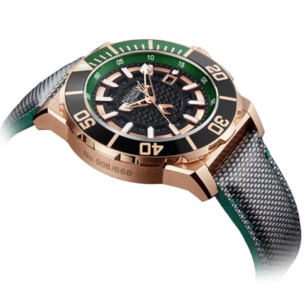 全球666PCS 原廠公司貨 具日期顯示 水行俠專屬色系造型 配備藍寶石水晶鏡面 正義聯盟標誌透明背蓋 料號:DM-JLW002.ARGN.5RNI.S.M DAUMIER X JUSTICE LEAGUE合作設計 JUSTICE LEAGUE限量版腕錶系列 具有趣味性和獨特的超級英雄風格 DAUMIER JUSTICE LEAGUE腕錶系列由歐洲設計師團隊設計 在《正義聯盟》中採用6個超級英雄: 蝙蝠俠,超人,神力女超人,水行俠,閃電俠和鋼骨 瑞士手錶品牌DAUMIER集結了整個團隊的精英和專家 包括自動機芯專家,三維繪圖團隊,鐘錶工程師,設計團隊等 以《正義聯盟》為主題,為每位英雄打造專屬腕錶 MUTATE系列設計靈感來自超級英雄的武器和戰鬥裝備 例如錶圈,錶冠護罩,皮帶等,是該系列的突出特點 錶款設計充分體現了超級英雄的個性,使人變身成現實生活中的超級英雄
