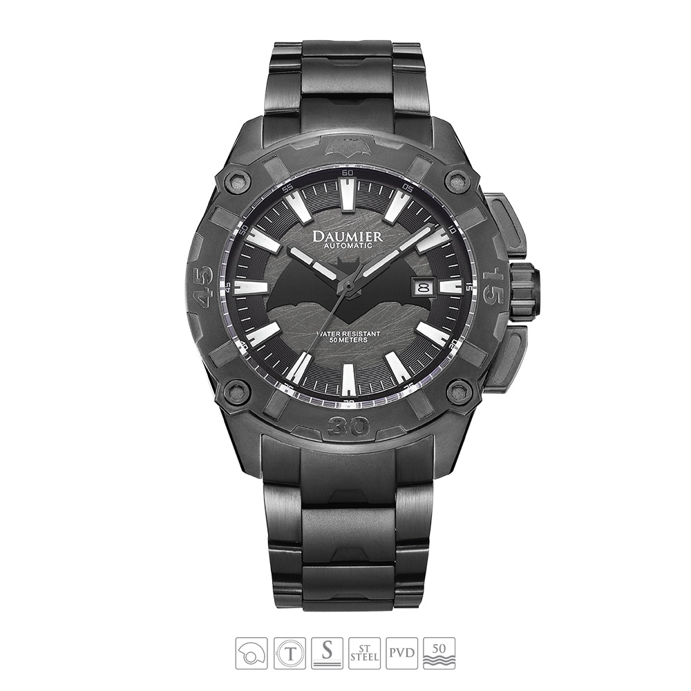 DAUMIER丹瑪聯乘JUSTICELEAGUE 正義聯盟。DAUMIER丹瑪以超級英雄為主題,擔當設計製作《正義聯盟》限量生產系列腕表的重任。DAUMIER丹瑪設計師們對「正義聯盟」腕表創作有著獨特的見解,設計師們認為如果英雄在執行任務時佩戴手錶,會更易掌握時間。DAUMIER設計團隊火力全開的為每位英雄設計專屬腕表,開發出三大產品系列,滿足每位元英雄變身前及變身後使用,設計非常貼心。 MUTATE COLLECTION 穆達馳系列:設計師團隊為超級英雄們設計的「變身前」便服配表。腕表設計完美展現了超級英雄的個性特徵,配上自動機械機芯,細節處處透露著專業高度,滿足了超級英雄的日常佩戴需求。 全球限量666枚。 作為正義聯盟超級腕表的開發專家,DAUMIER設計師們希望通過「超級英雄都應該戴表」理念呼籲「正義聯盟」部分沒有佩戴腕表習慣的忠實粉絲們,能在佩戴「超級腕表」的同時體會到在現實中,我們都需要變身,成為生活中的英雄,在不同場合佩戴不同規格的手錶,展現時尚及專業的不同身分。DAUMIER丹瑪聯乘正義聯盟的亮點圍繞「現實生活中的超級英雄」為主題,完成了JUSTICE LEAGUE腕表設計及生產的艱巨任務。作為腕表界的創作先鋒,DAUMIER確切地實現了GGV品牌價值:G-good design 優質設計G-good Quality 品質優良Value for Money 物超所值優質設計、品質及物超所值的理念,把佩戴腕表的習慣重新定義,同時執行屬於國際品牌、企業的社會責任。
