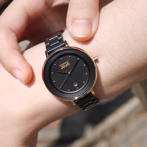 NATURALLY JOJO JO96926-88R 黑面玫金殼黑陶瓷腕錶 女錶 情人節禮物男錶女錶 錶