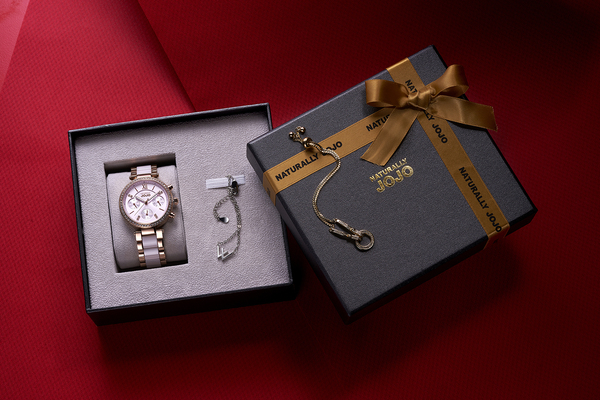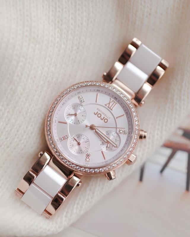 NATURALLY JOJO JO96973-10R 奢華鑲鑽三眼粉陶不鏽鋼錶