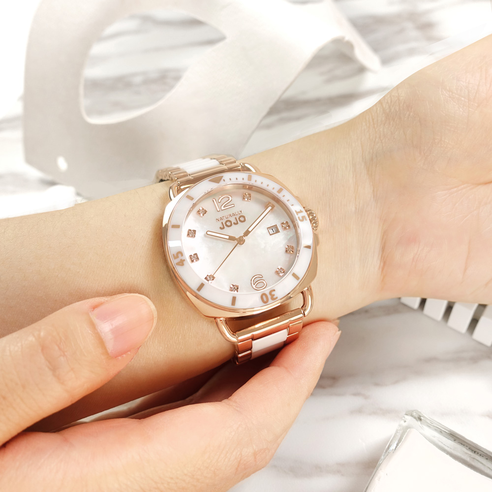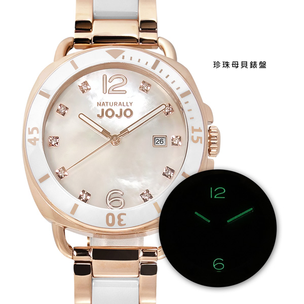 NATURALLY JOJO JO96988-80R 珍珠母貝 閃耀晶鑽 藍寶石水晶玻璃 陶瓷不鏽鋼手錶
