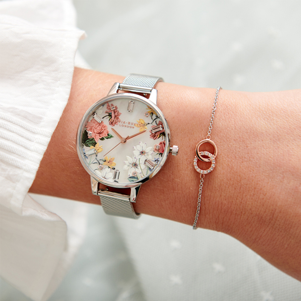 Olivia Burton 再次美出新高度!秋季推出的 Sparkle Florals 系列仙氣十足,優雅的手繪繁花綻放在閃亮錶面上,搭配夢幻水晶鑽飾勾勒出夢幻英倫花境,在手腕間譜出了璀璨的浪漫詩意 ! 為女孩們的秋日時尚搭配增添更多優雅細節。