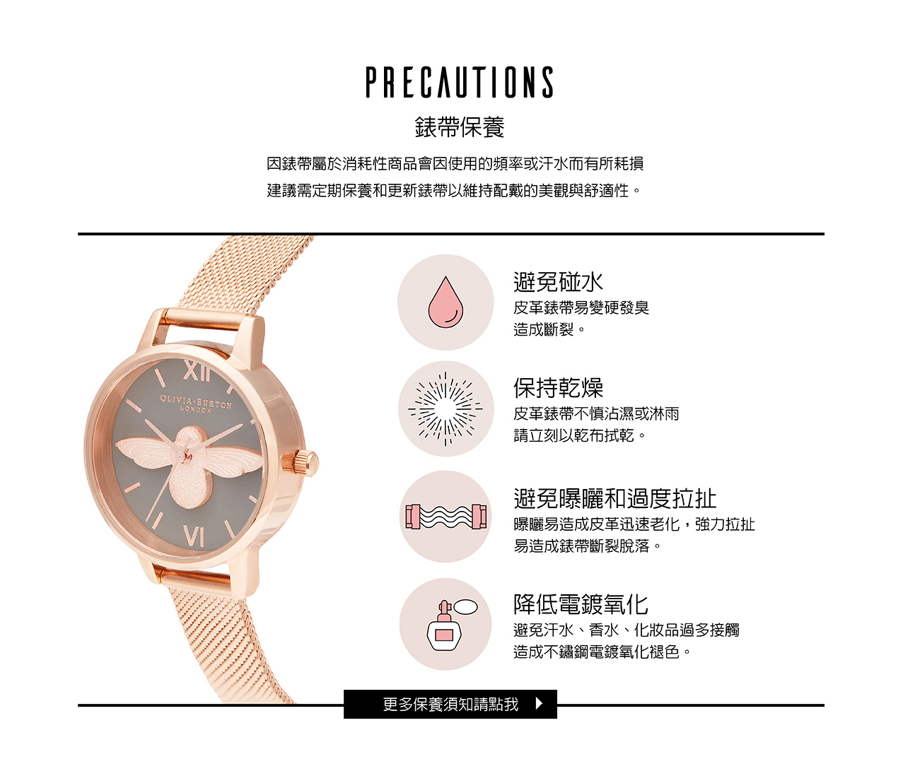 ※ 為避免電鍍氧化和皮革尼龍發臭斷裂,請勿配戴飾品配件洗澡。