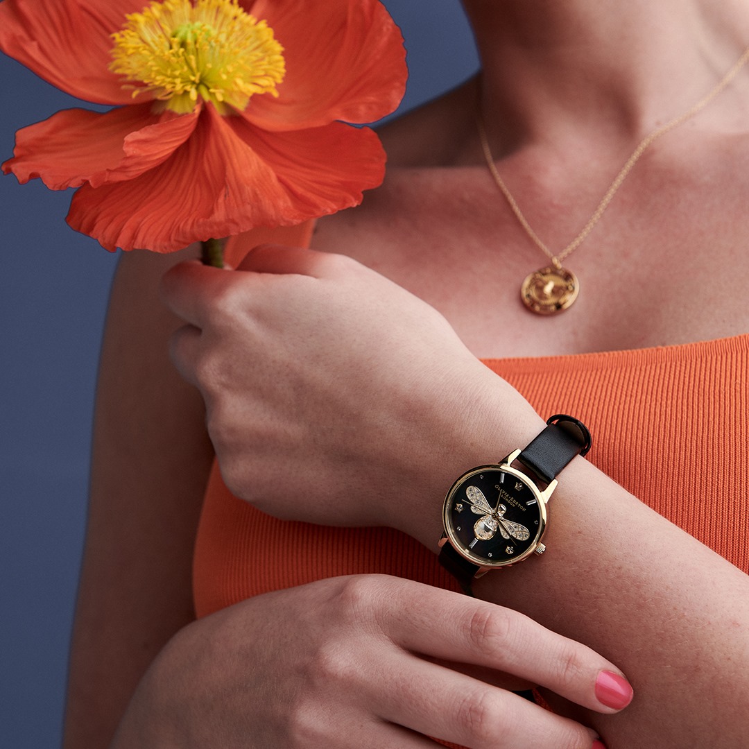 Olivia Burton 最夢幻的Sparkle Bee新款上市 ! 以質感霧黑搭配經典Sparkle Bee 3D 蜜蜂與浪漫的星星鑽飾 ,閃耀獨特的英倫自信光采。