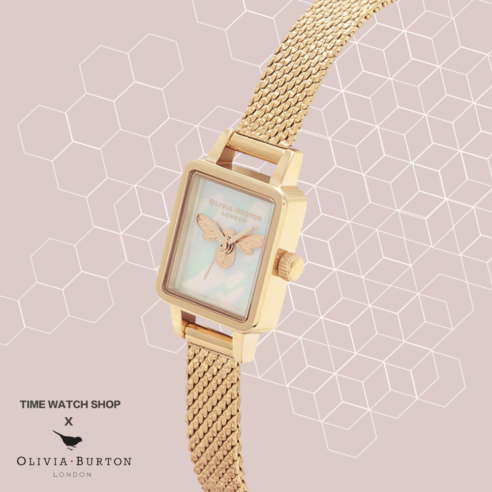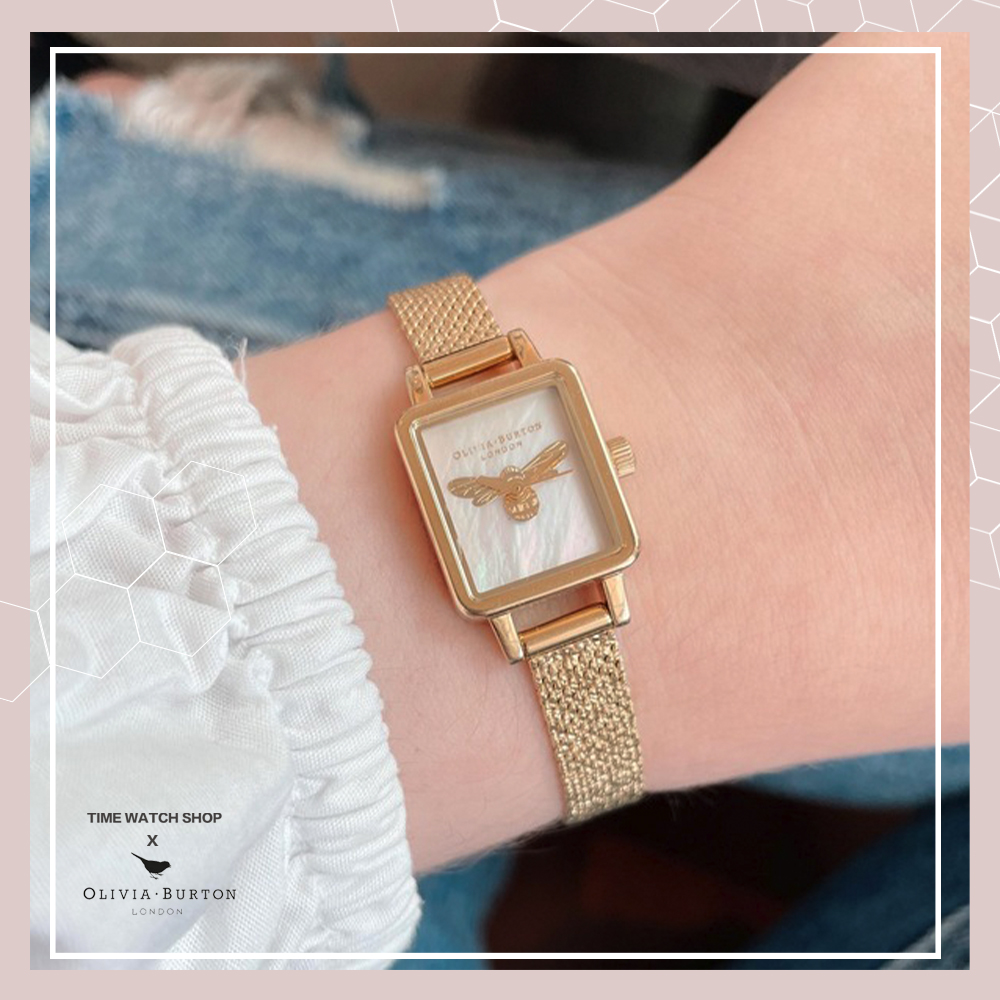 Olivia Burton OB16MC66 方形金色殼帶白貝蜜蜂面米蘭帶腕錶 手錶生日禮物情人節禮物