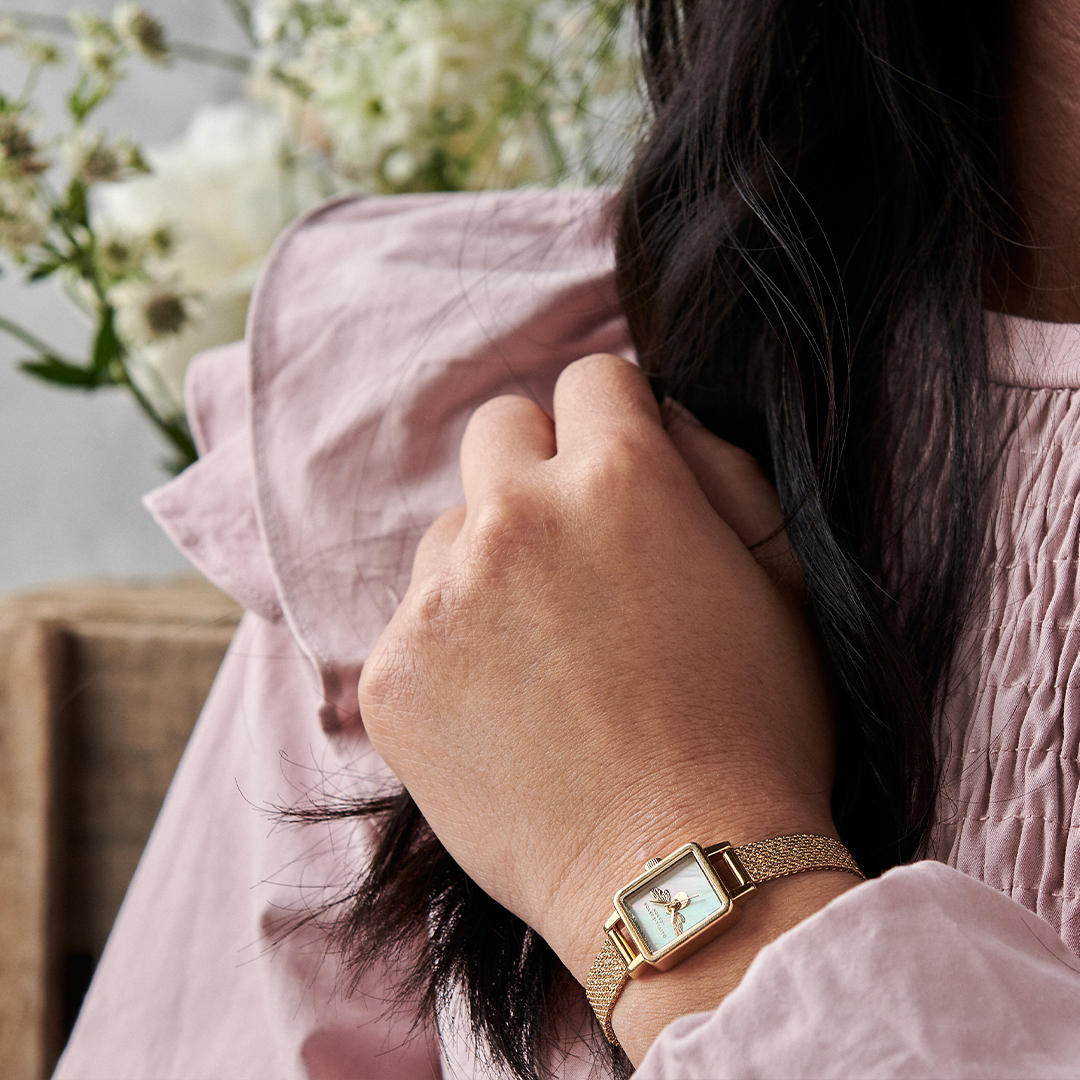 Olivia Burton 暢銷款Lucky Bee系列 ! 以16mm小巧精緻的優雅錶面 搭配經典蜜蜂與充滿華麗感的金色米蘭編織錶带 ! 呈現出自信迷人的英倫時尚氣息 有著讓人愛不釋手的優雅魅力。