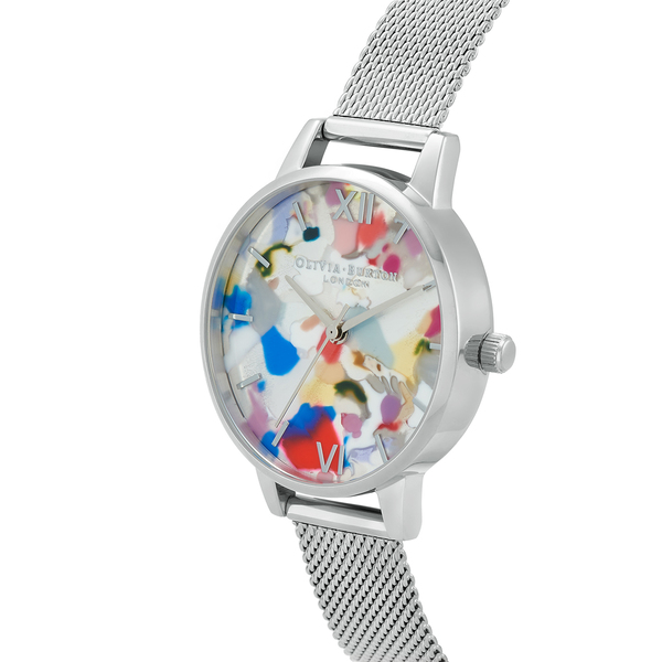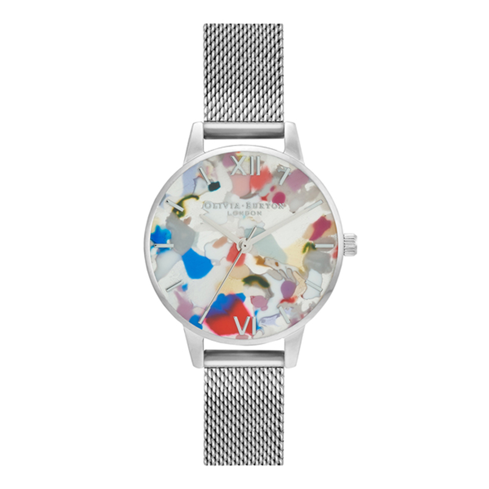 OLIVIA BURTON 全新普普系列融入了前衛、時尚與環保概念,讓我們一起從每日例行事項中逃脫,來點不一樣的質感翻玩!POP ART 錶面上絢麗的幾何色彩,是由回收化妝品包裝再製而成,讓流行搭配也能與環境共生為日常裝扮增添一點摩登時髦的趣味感 ( 禮盒組皆內含時髦好搭的米蘭錶帶。)