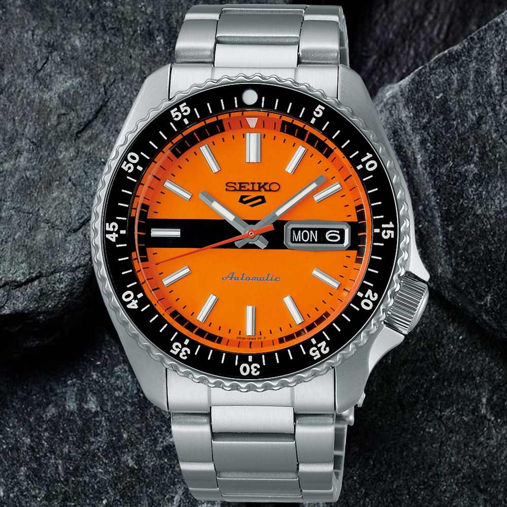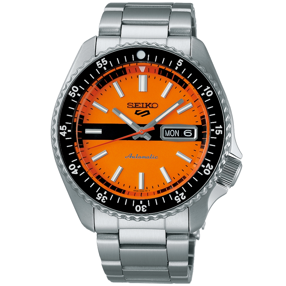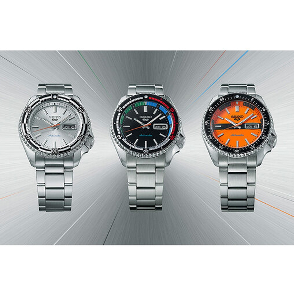 為了紀念Seiko 5 Sports問世55周年,另外也推出三款SKX Sports Style現代詮釋版腕錶。 錶款採用42.5mm SKX腕錶殼型,承襲配置在4點鐘位置的錶冠及立體感十足的單向旋轉錶圈等經典設計元素,兼具耐用與可靠性,向經典系列致敬。 面盤部分則採用的銀色、黑色和橙色面盤,靈感分別汲取自1969年推出的歷史腕錶Rally Divers(銀色)、Regatta(黑色)、Double Hurricane(橙色)三款復古設計, 以鮮明的色彩性格來重新詮釋1969年的歷史錶款,為當代Seiko 5 Sports系列增添歷史價值和設計的豐富性。