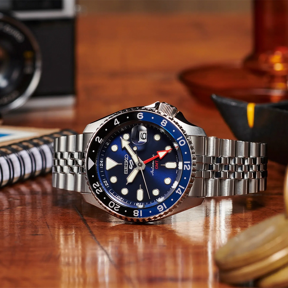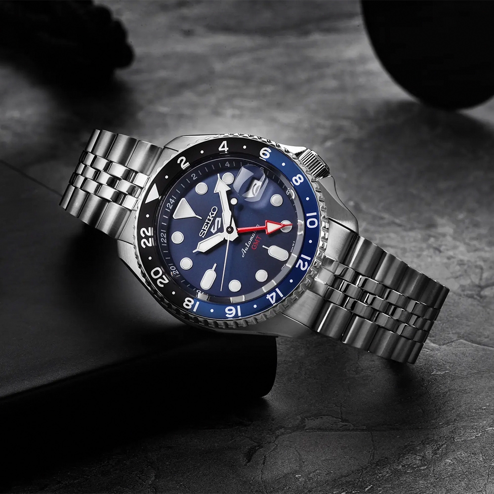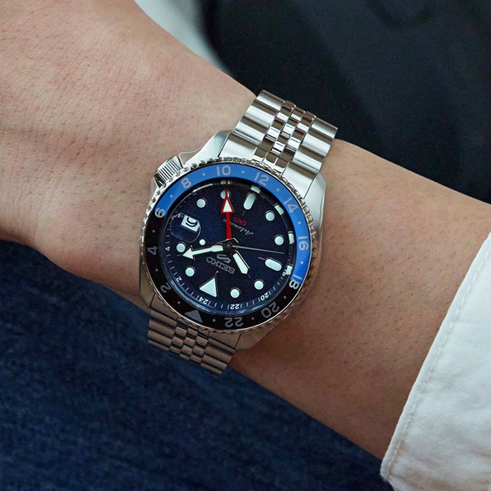 與5 Sports經典的SKX錶殼同錶徑,厚度稍微增加,並增加GMT指針功能的新錶款。
