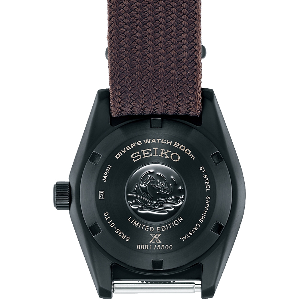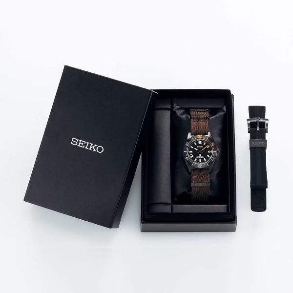 黑潮系列The Black Series 外型復刻自SEIKO 1965年第一只國產潛水錶, 錶帶採用日本傳統「製紐(Seichu) 」編織技法增添現代感。 此次以夜潛時頭燈顏色的橘色為特徵,在指針與刻度中呈現。 並且搭配Seiko獨自的Lumibrite技術,於夜深的海面下仍可清楚讀時。