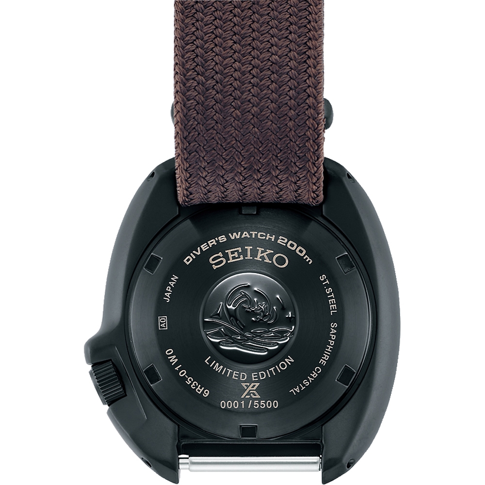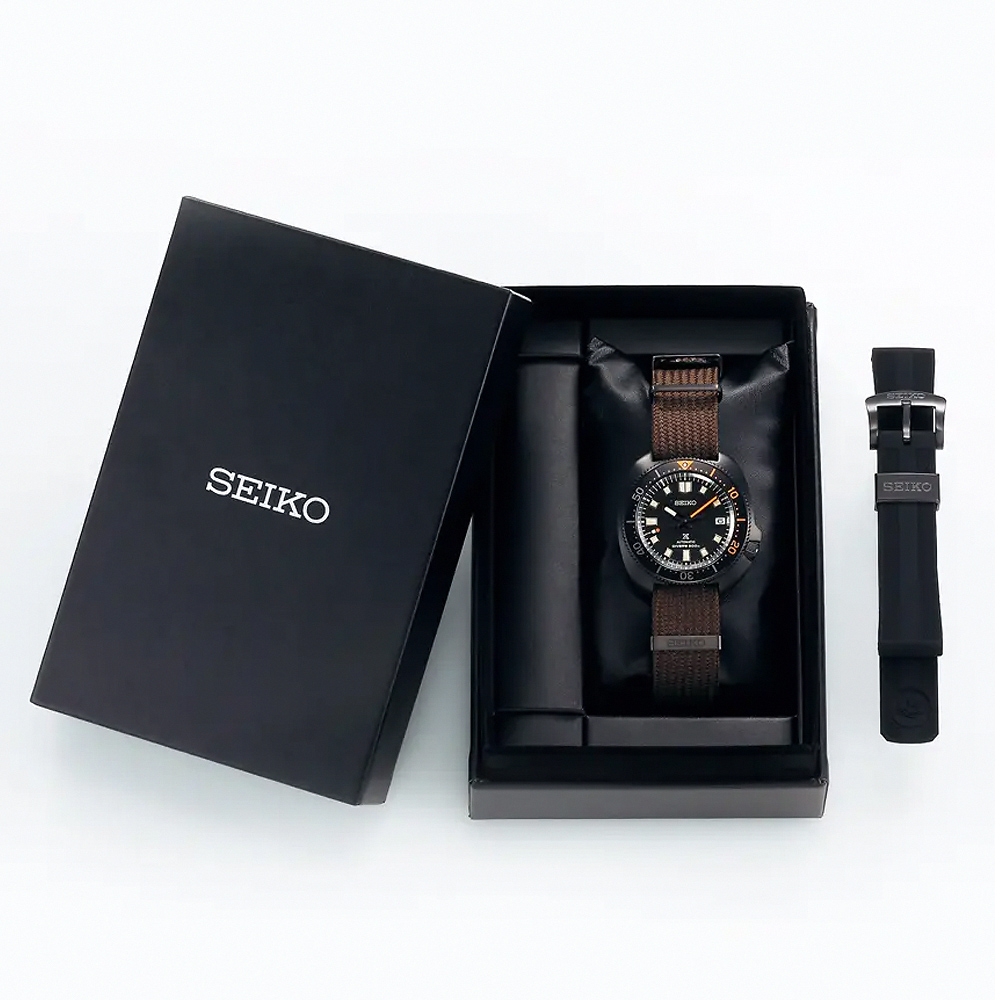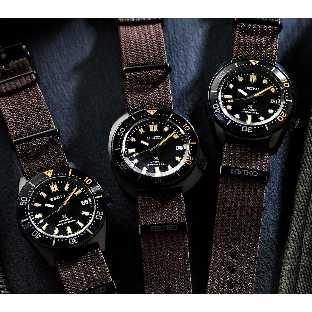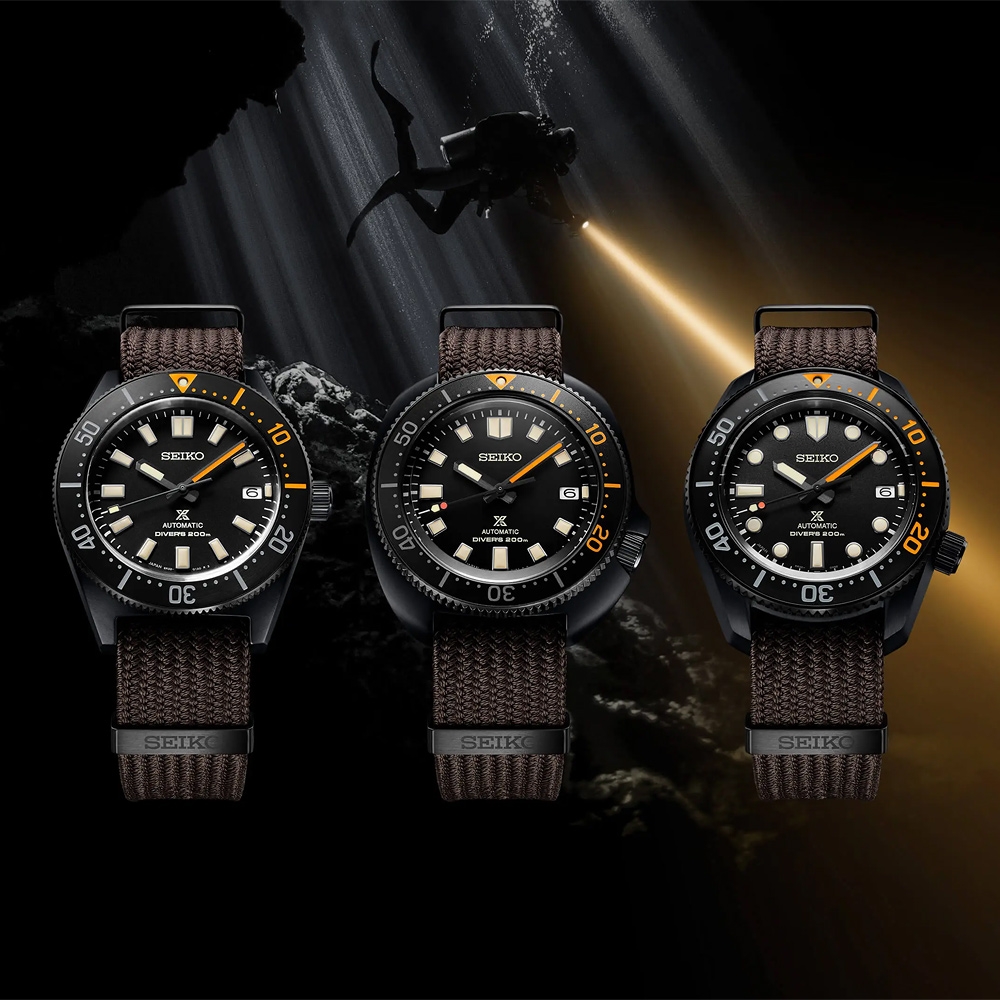 黑潮系列The Black Series 外型復刻自SEIKO 1970年推出的潛水錶, 承襲原始錶殼設計,防水深度提升至200m,鏡面也升級為藍寶石水晶鏡面,錶帶採用日本傳統「製紐(Seichu) 」編織技法增添現代感。 此次以夜潛時頭燈顏色的橘色為特徵,在指針與刻度中呈現。 並且搭配Seiko獨自的Lumibrite技術,於夜深的海面下仍可清楚讀時。