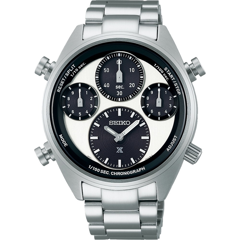 Prospex推出外觀更具設計感的四款全新的太陽能計時碼錶,並搭載全新的8A50太陽能計時機芯, 擁有能夠以1/100秒為單位進行計測的精密碼錶功能。 為了確實讀取計測時間,新款最大的特徵在於四個計時顯示完全獨立的面盤配置, 在2點鐘位置設有1/100秒計時子盤、12點鐘位置設有秒盤、10點鐘位置設有1/10秒計時盤。