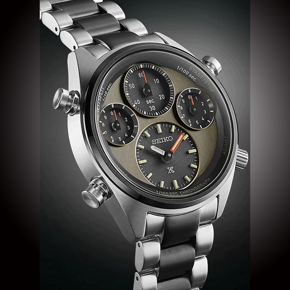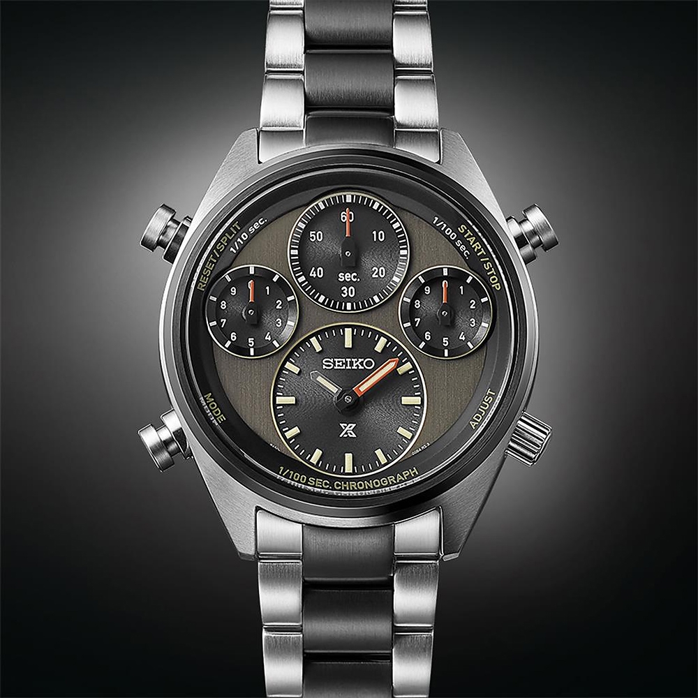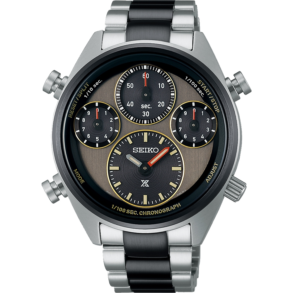 Prospex推出外觀更具設計感的四款全新的太陽能計時碼錶,並搭載全新的8A50太陽能計時機芯, 擁有能夠以1/100秒為單位進行計測的精密碼錶功能。 為了確實讀取計測時間,新款最大的特徵在於四個計時顯示完全獨立的面盤配置, 在2點鐘位置設有1/100秒計時子盤、12點鐘位置設有秒盤、10點鐘位置設有1/10秒計時盤。 SFJ005P1的灰色面盤乃是為了紀念1983年發售的世界首款指針式石英計時碼錶。 而腕錶以灰色為基調的面盤和橘色的指針等經典配色,則是延用自1992年發表、世界第一款能夠以1/100秒為單位進行計測的指針式計時碼錶, 同時也象徵著在這40年的歷史中佔有新時代里程碑的地位。