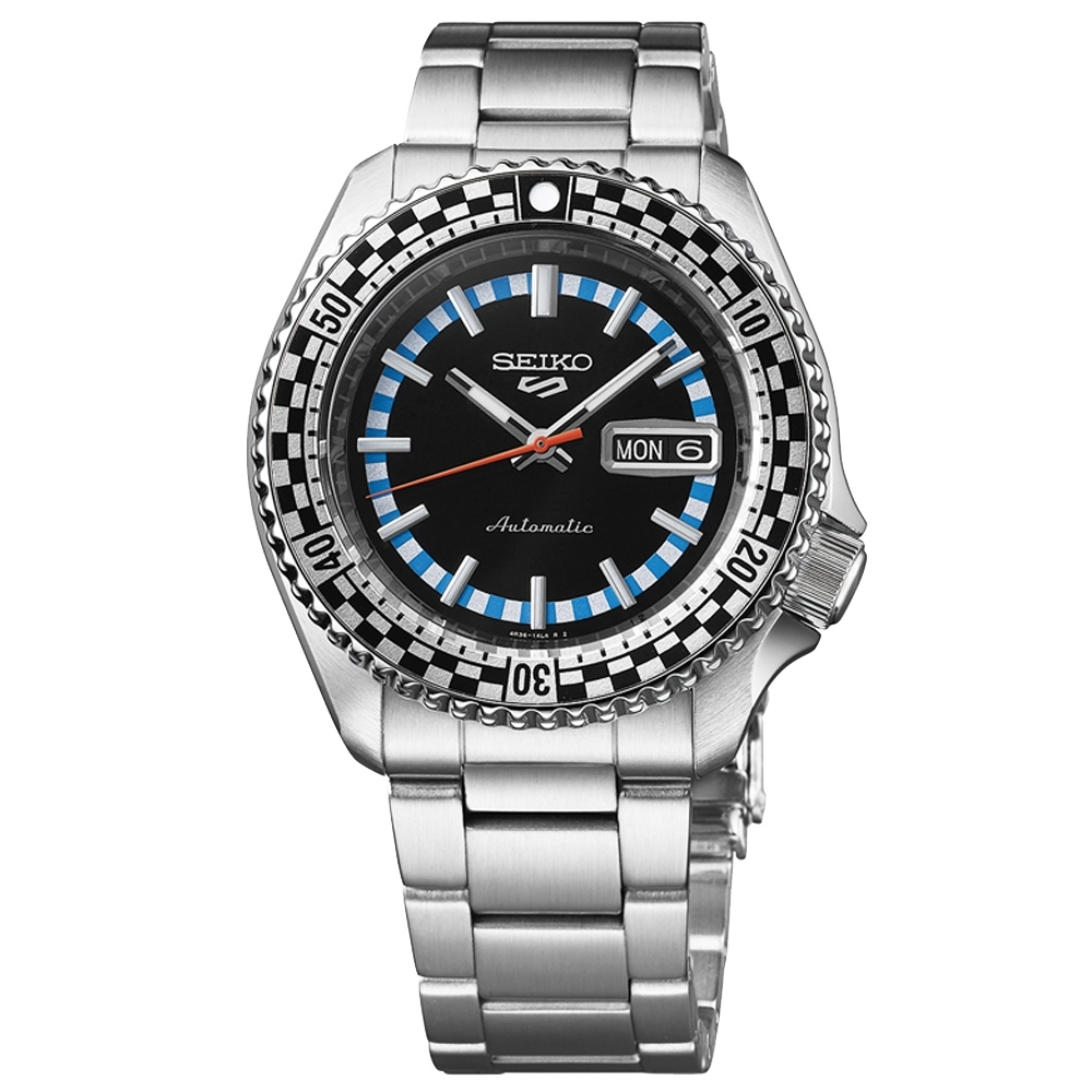 ◎靈感分別汲取自1969年推出的人氣歷史腕錶,因錶圈設計類似賽車的旗子而深受歡迎。 ◎採用SKX 42.5mm的殼型,錶圈復刻了當時很特別的設計。 ◎面盤與指針的設計也與SKX一般款不同,更顯現復古質感。