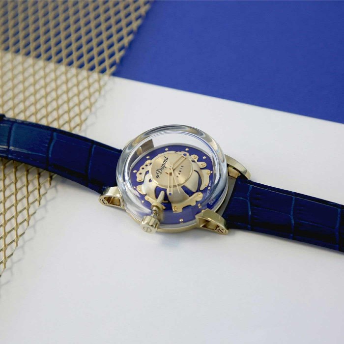 ▶法國製造、瑞士機芯 ▶防水礦物水晶圓頂錶面設計 ▶50米防水、獨特前衛設計風格 法國精品品牌S.T. Dupont不斷發展且創新的作品, 於今年推出大膽且醒目的設計進入腕錶市場。 透過可透視的礦物水晶圓頂錶面, 搭載由瑞士Ronda製造的石英機芯, 創造出具獨特設計及前衛風格的HYPERDOME系列。 充滿現代新潮感,搭配藍色錶面上的精鋼材質波紋紋路、 鱷魚壓紋小牛皮錶帶,及獨特的防水礦物水晶圓頂錶面, 將經典配色與現代設計巧妙融合, 成就出一款全新時計臻品,彰顯當代流行色彩。