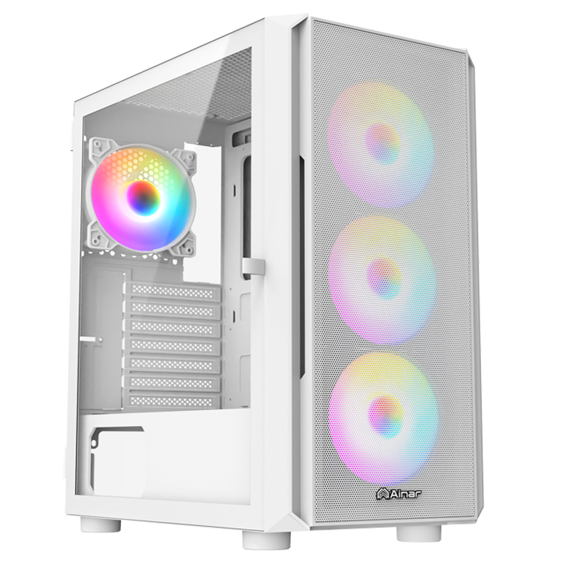 - 機殼︰艾納爾 R21 掀門玻璃 ARGB風扇*4 黑(面板玻璃)白(面板網孔)