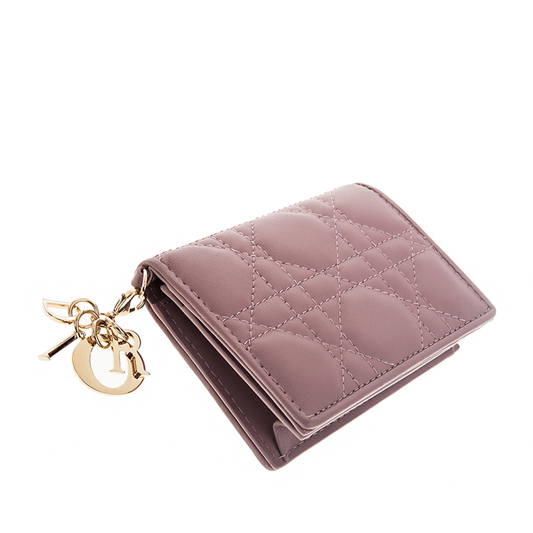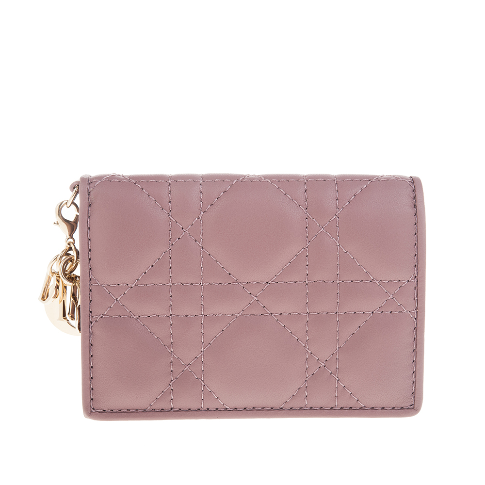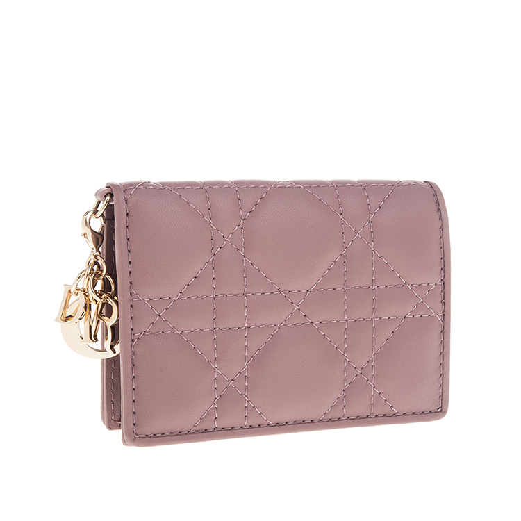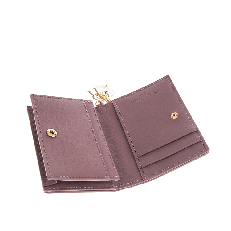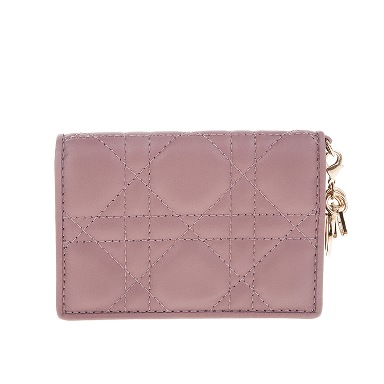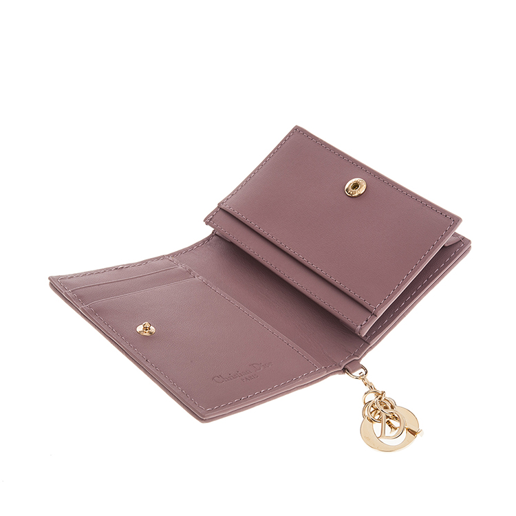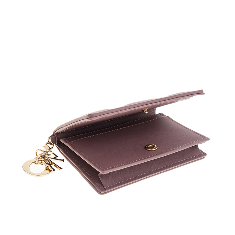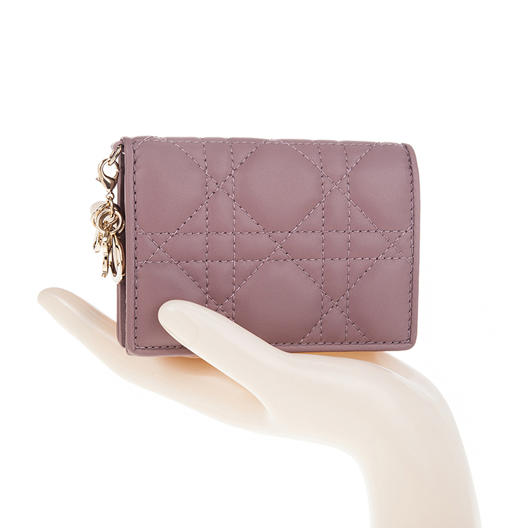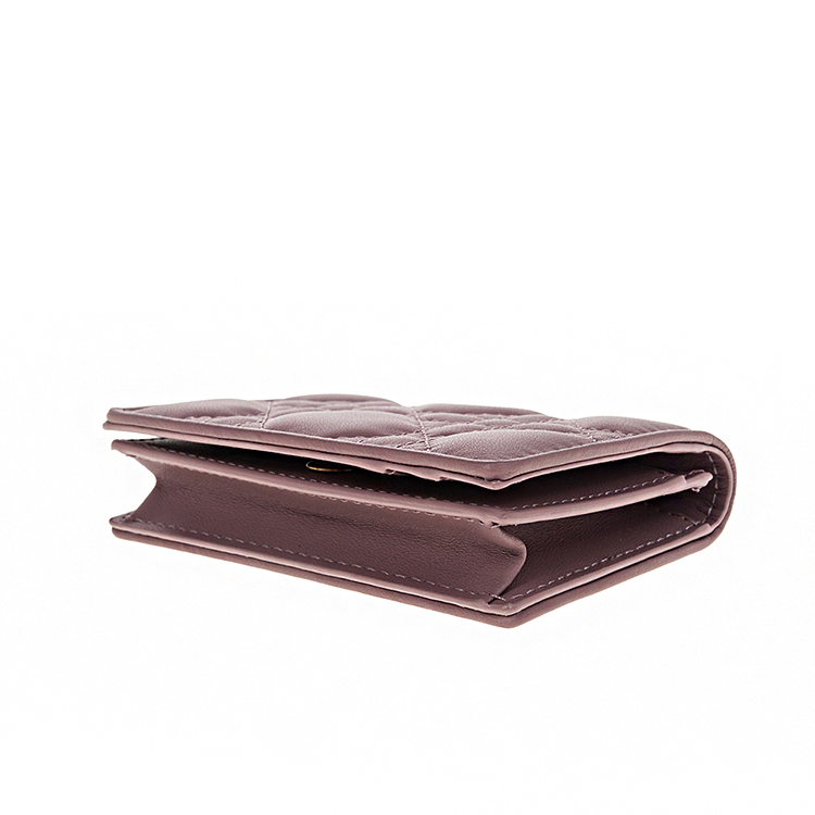 DIOR 新款Cannage 藤格紋圖案羊皮LADY DIOR 翻蓋卡片包 (紫色)