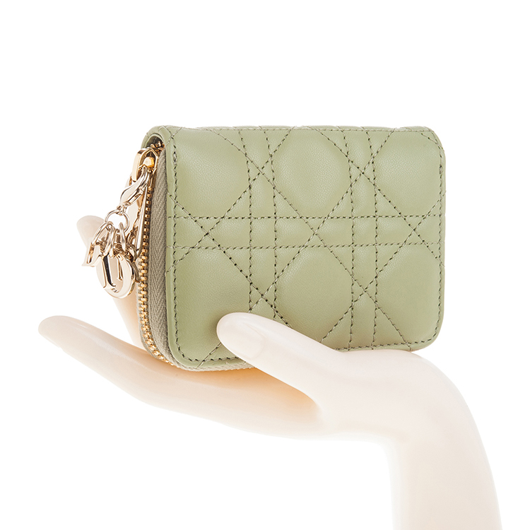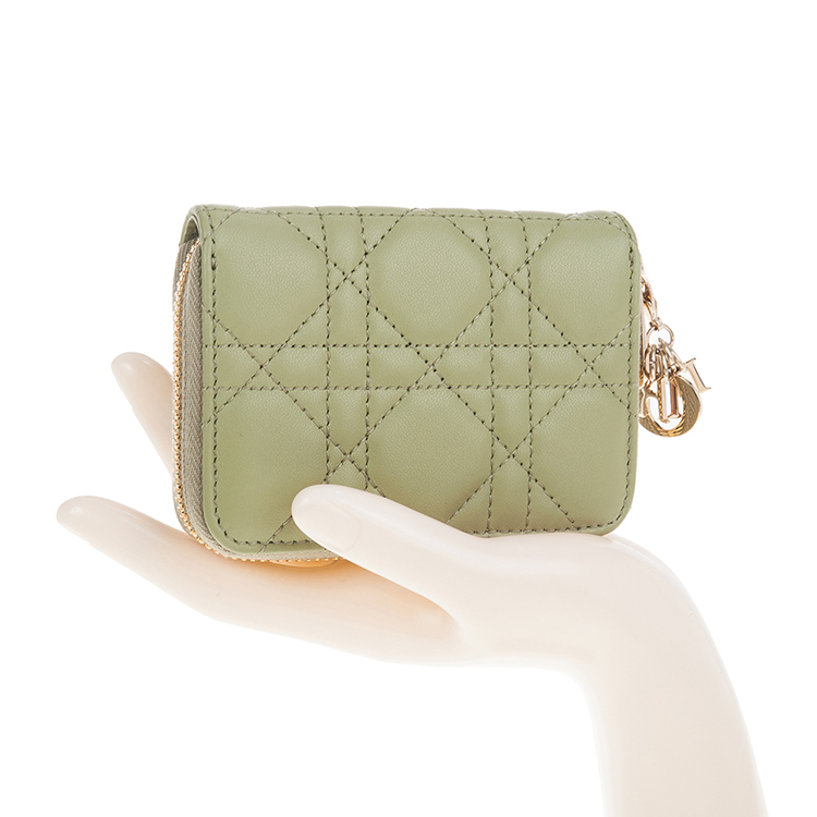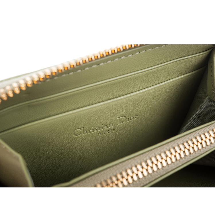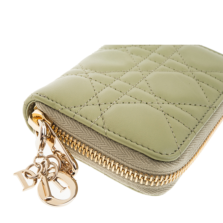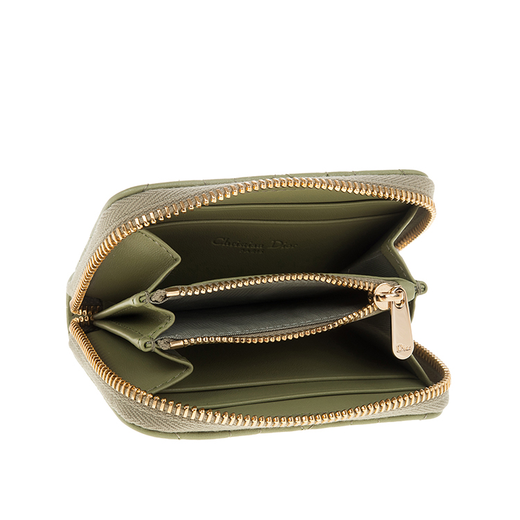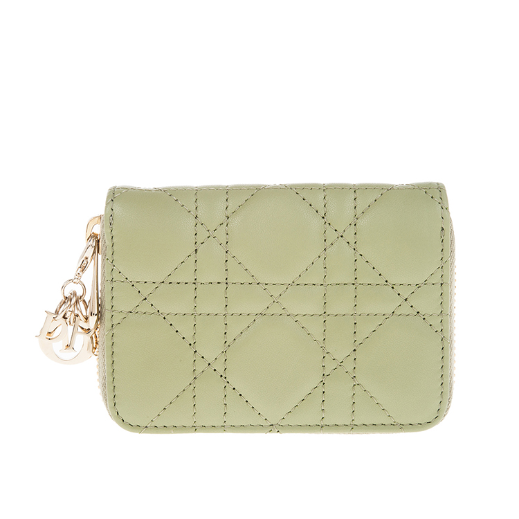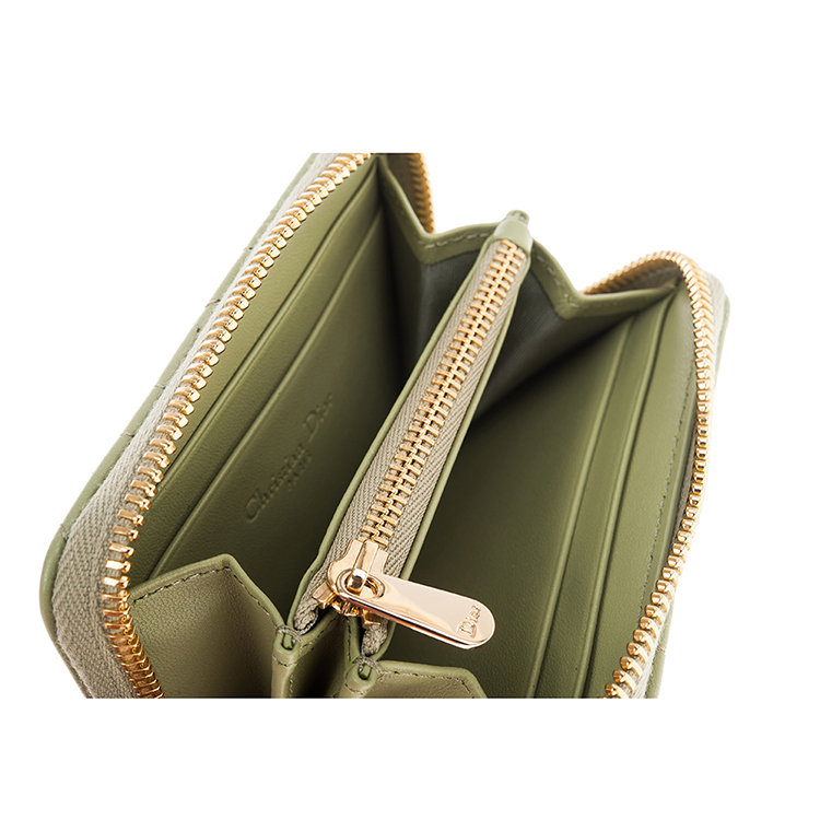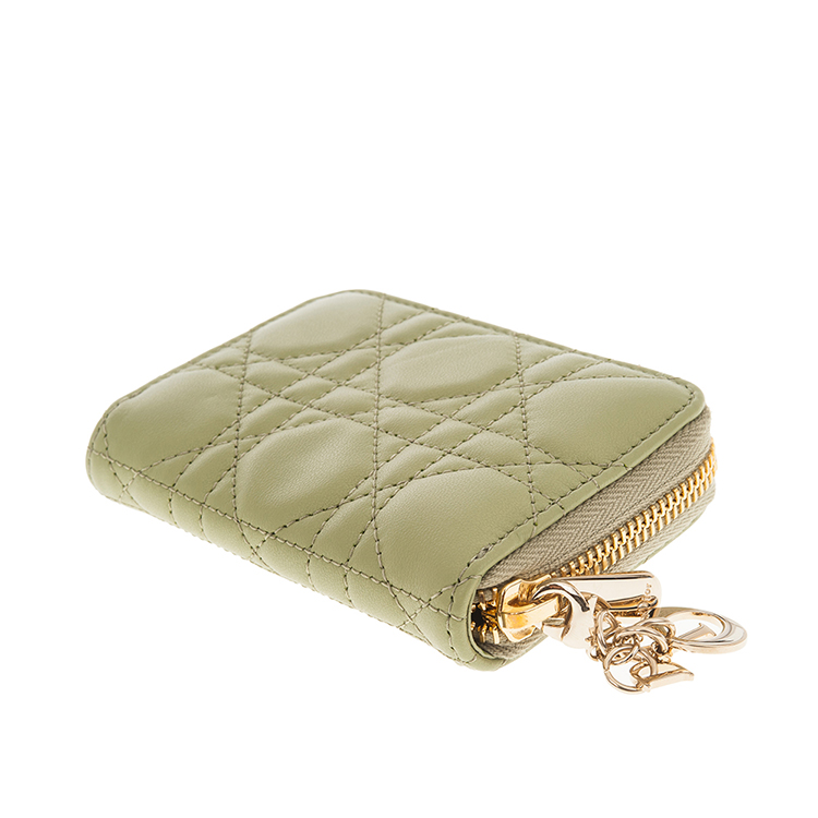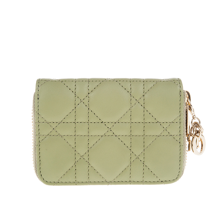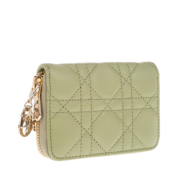 DIOR 新款Cannage 藤格紋圖案羊皮LADY DIOR VOYAGEUR零錢包 (綠色)