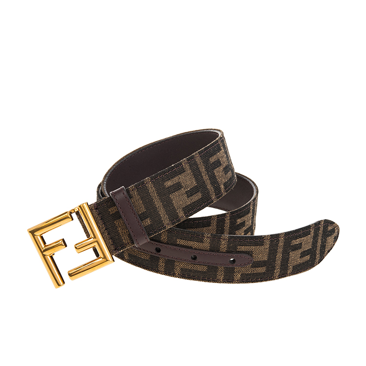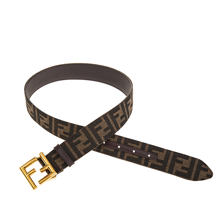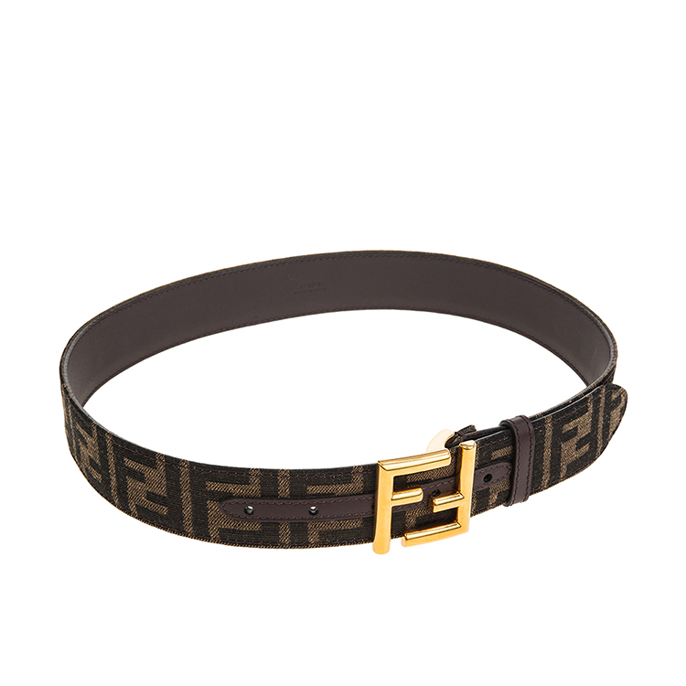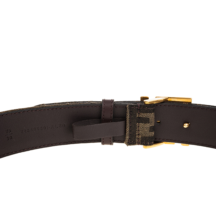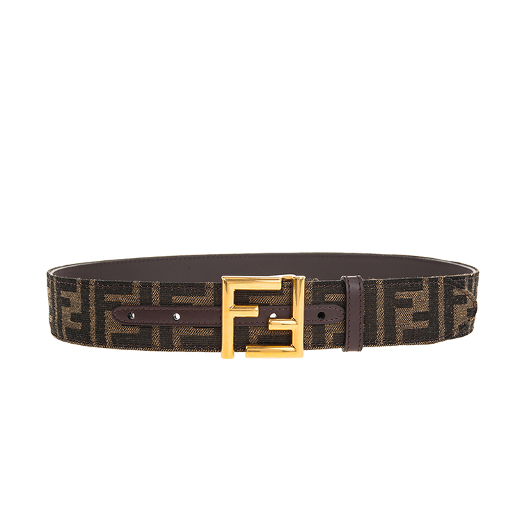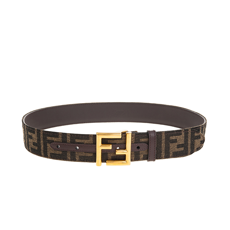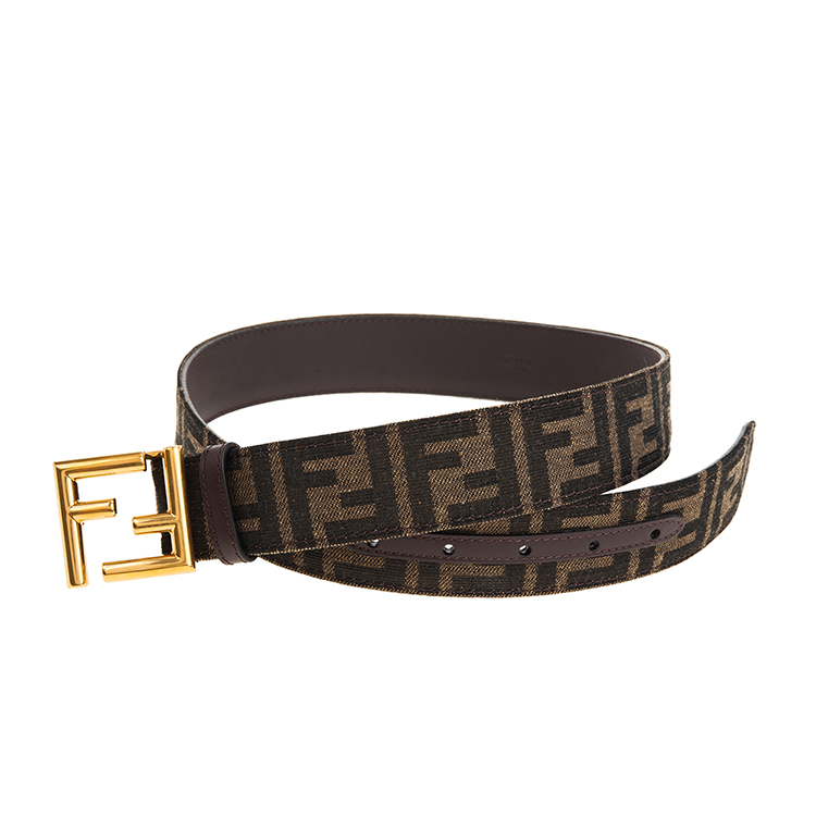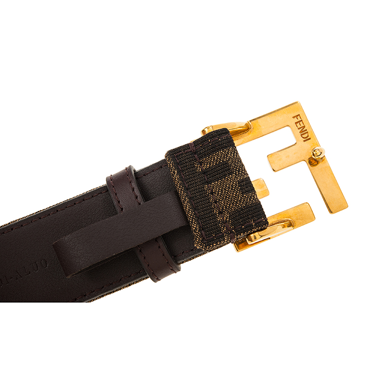 FENDI 芬迪 經典金屬FF LOGO釦飾織布緹花款皮帶(深咖/75)