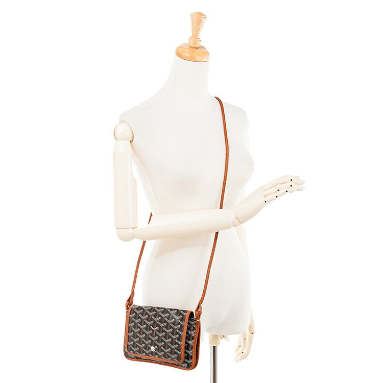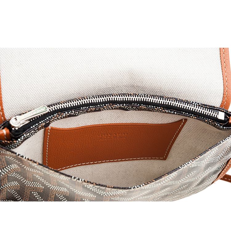 GOYARD 高雅德 新款PLUMET系列帆布LOGO翻蓋扁斜背包(黑色/棕色)