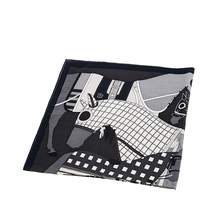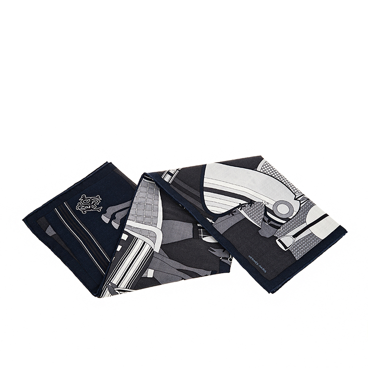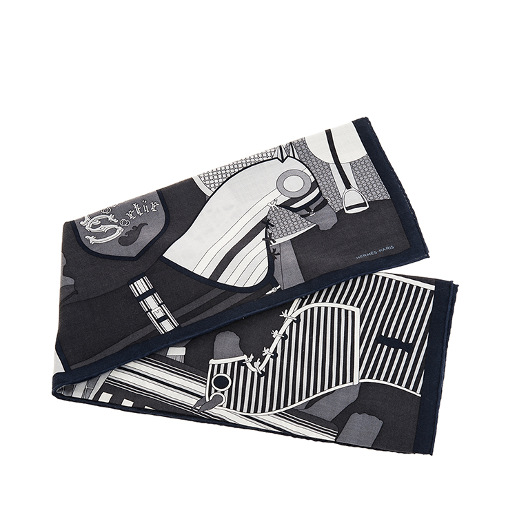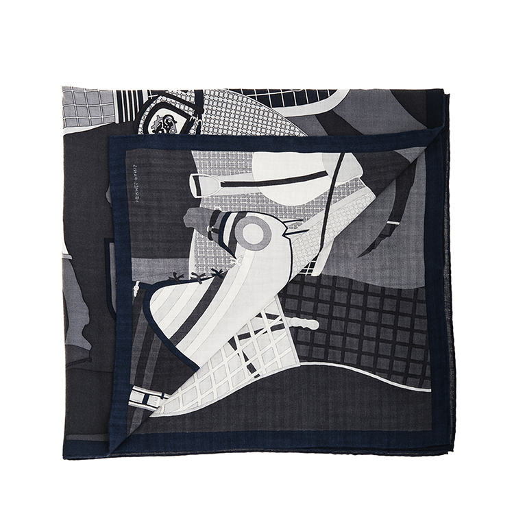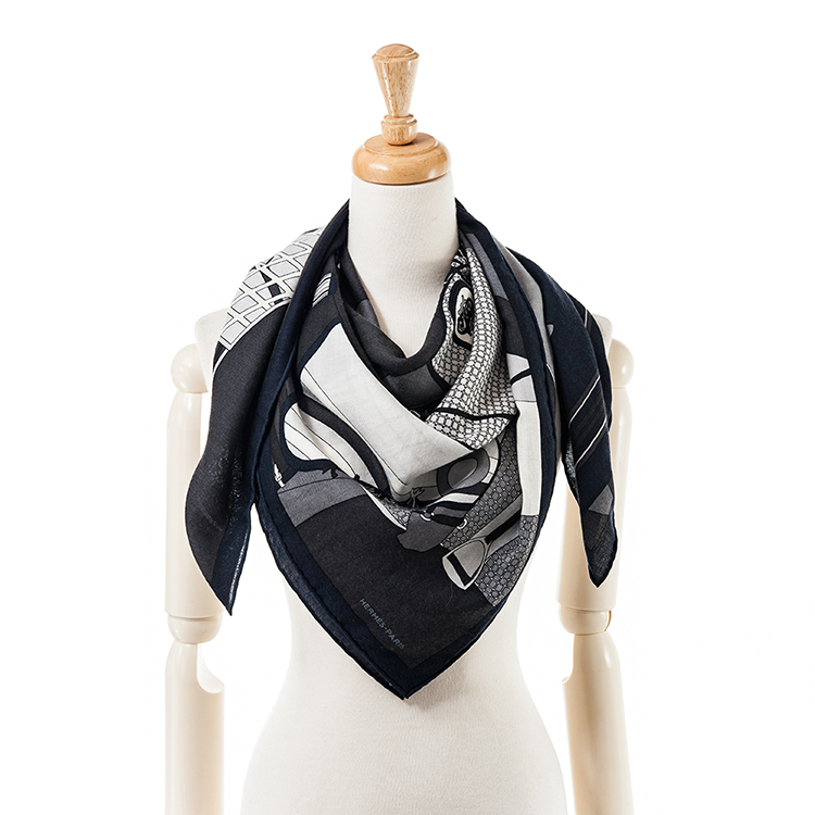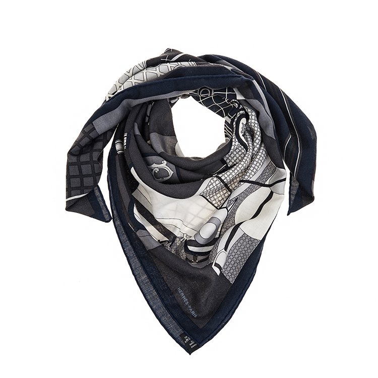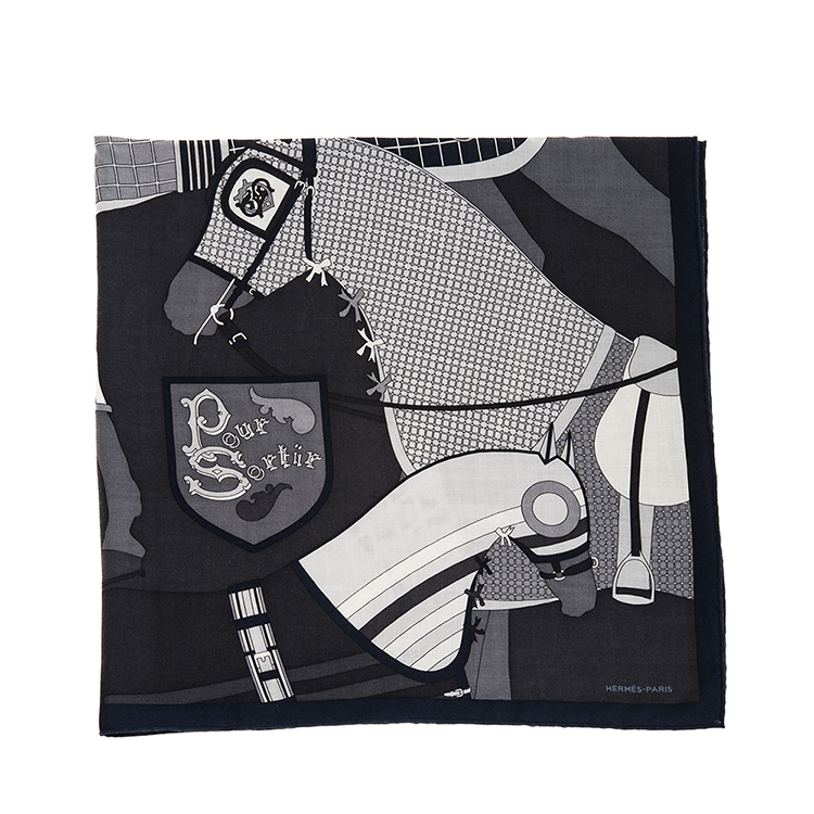 HERMES 愛瑪仕 經典Pour Sortir scarf 100方巾/領巾 (炭灰色 / 淺灰色 / 海軍藍)