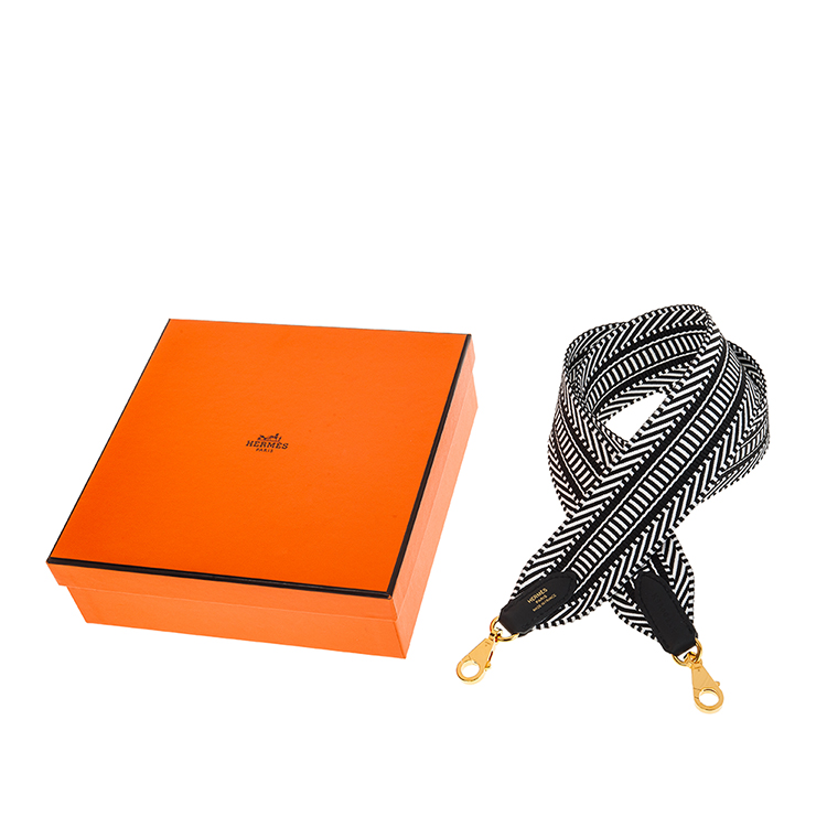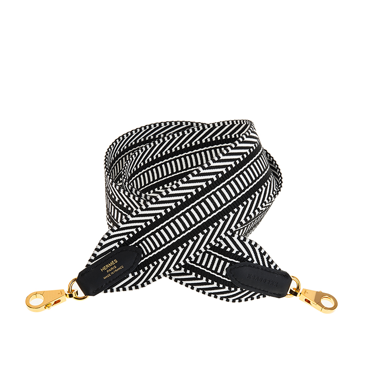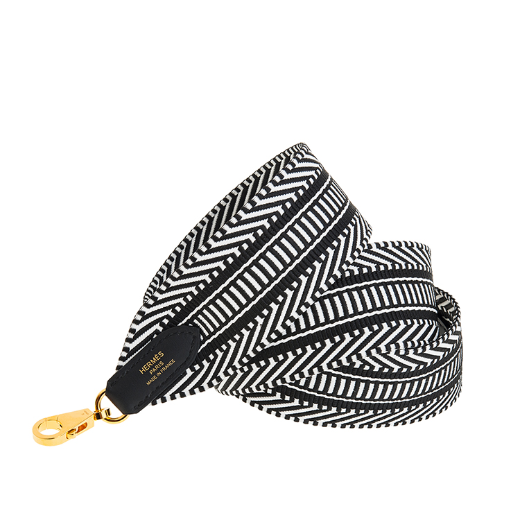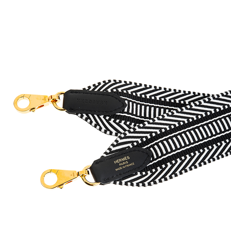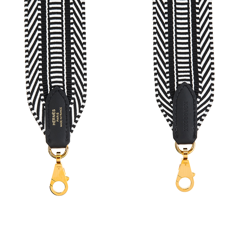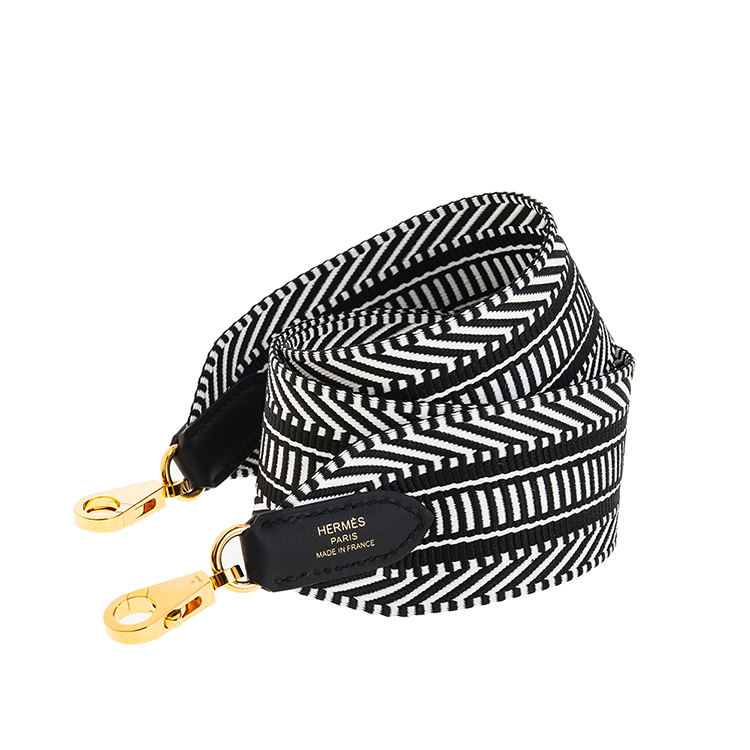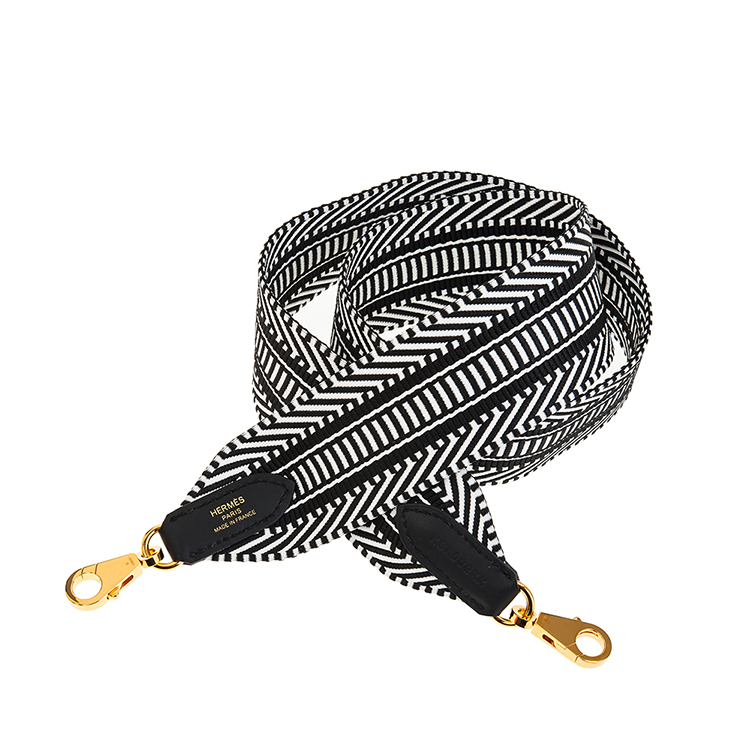 HERMES 愛馬仕經典Sangle Cavale系列寬版帆布拼色織帶背帶 (黑色)