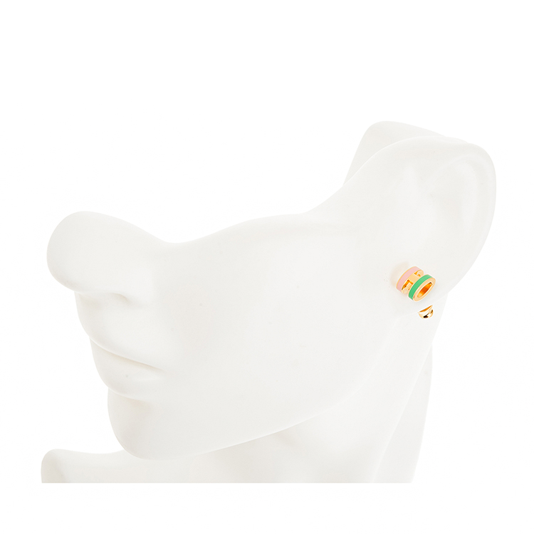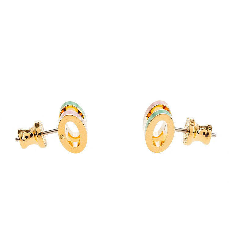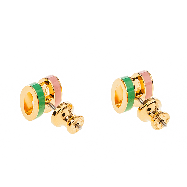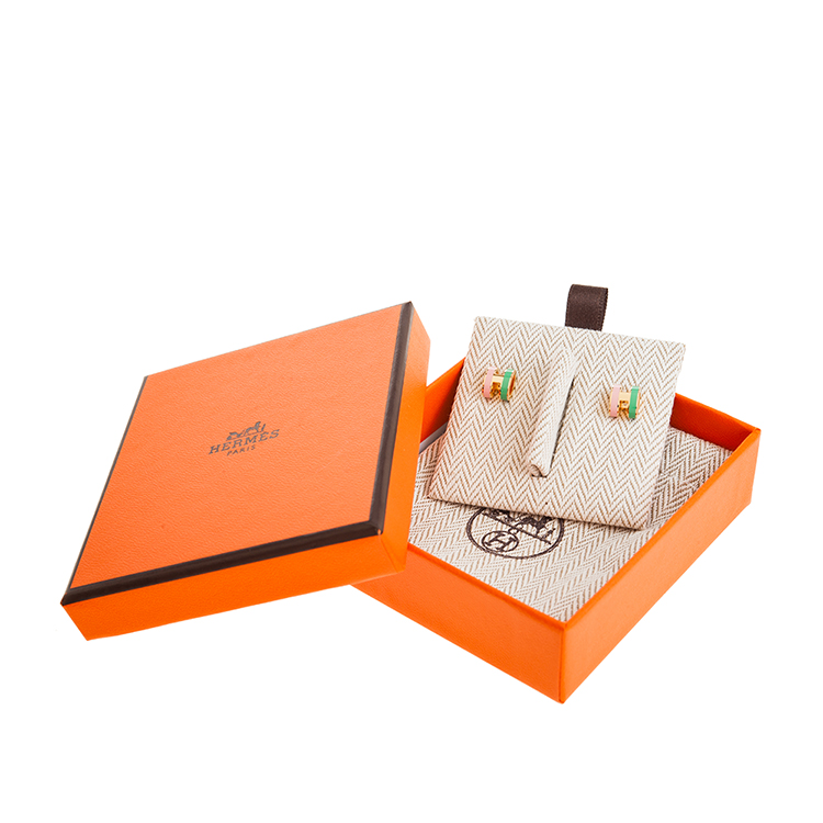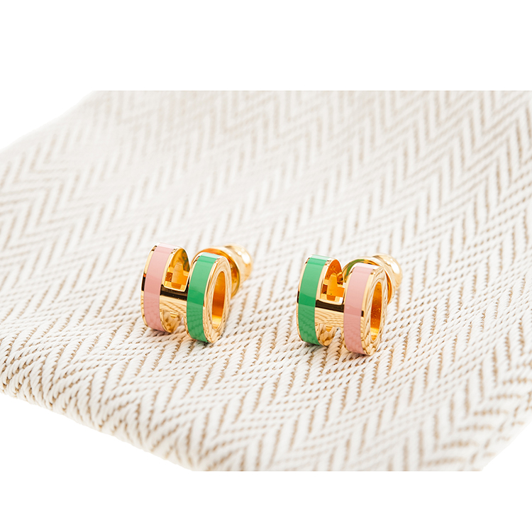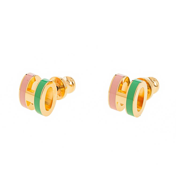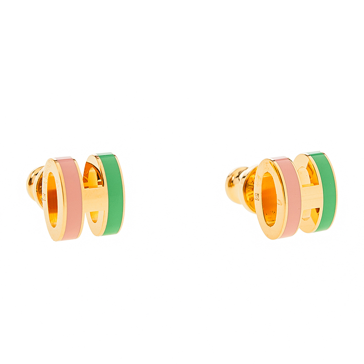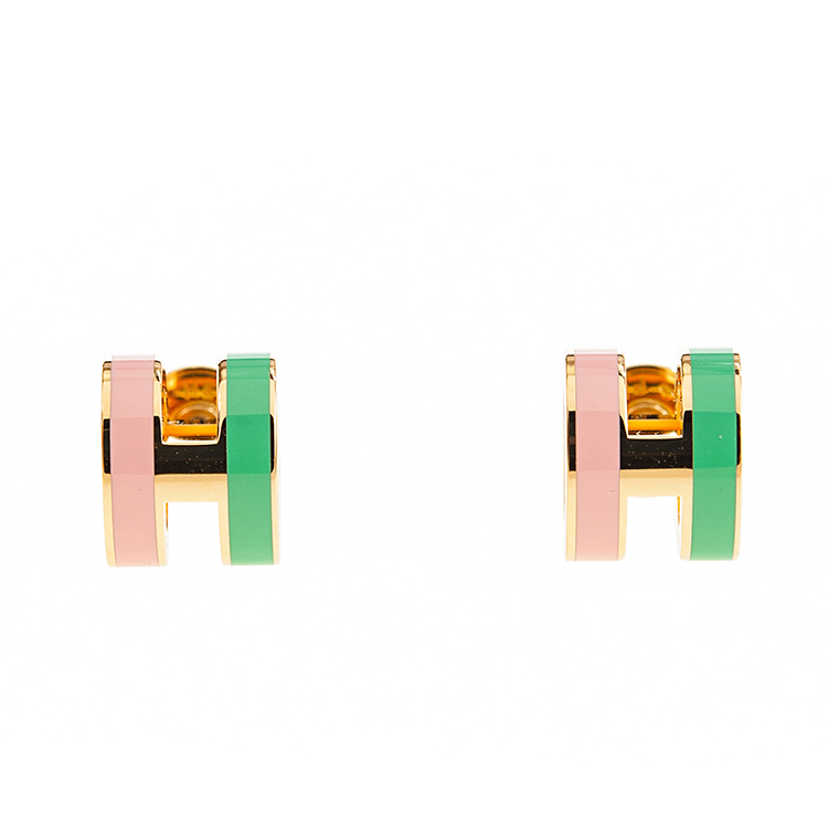 HERMES 愛馬仕 新雙色 Mini Pop H pendant 立體橢圓簍空穿式耳環 (MALABAR/淺金)