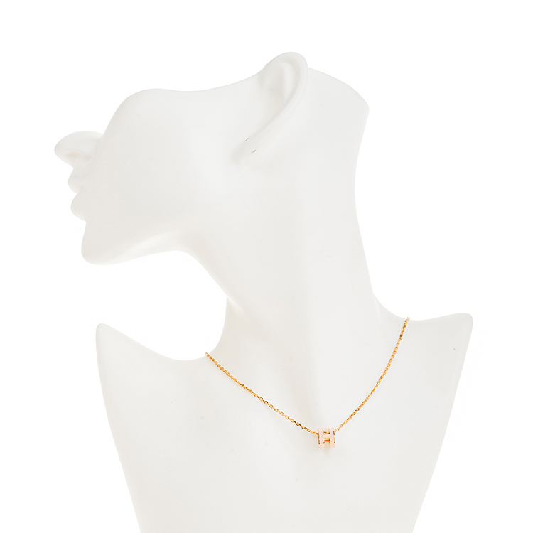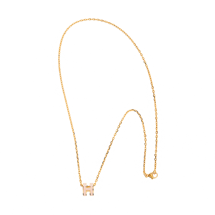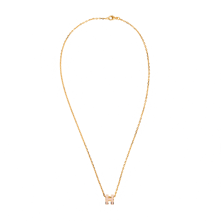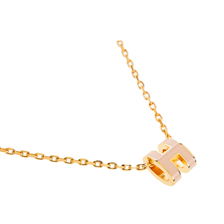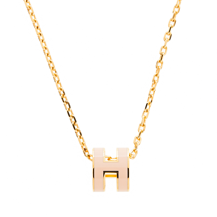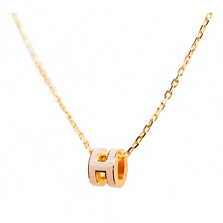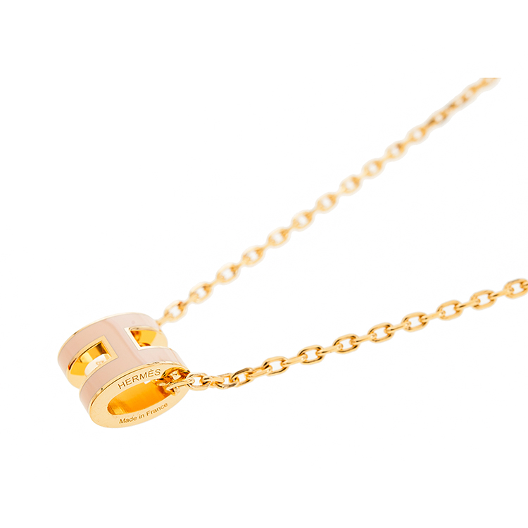 HERMES 愛馬仕 經典Mini Pop H pendant 立體橢圓簍空項鍊(POUDRE/淺金)