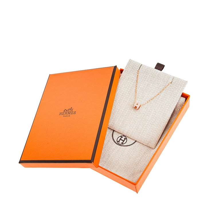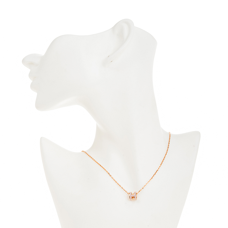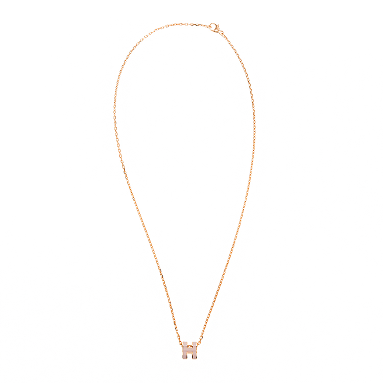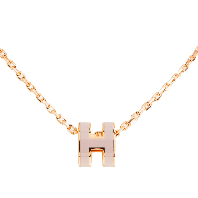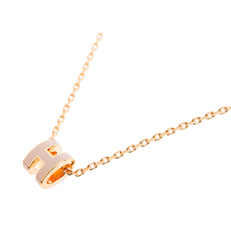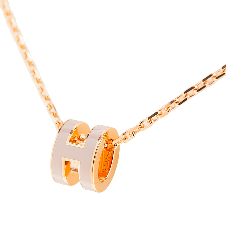HERMES 愛馬仕 經典Mini Pop H pendant 立體橢圓簍空項鍊(ROSE EGLANTINE/玫瑰金)