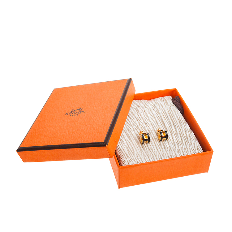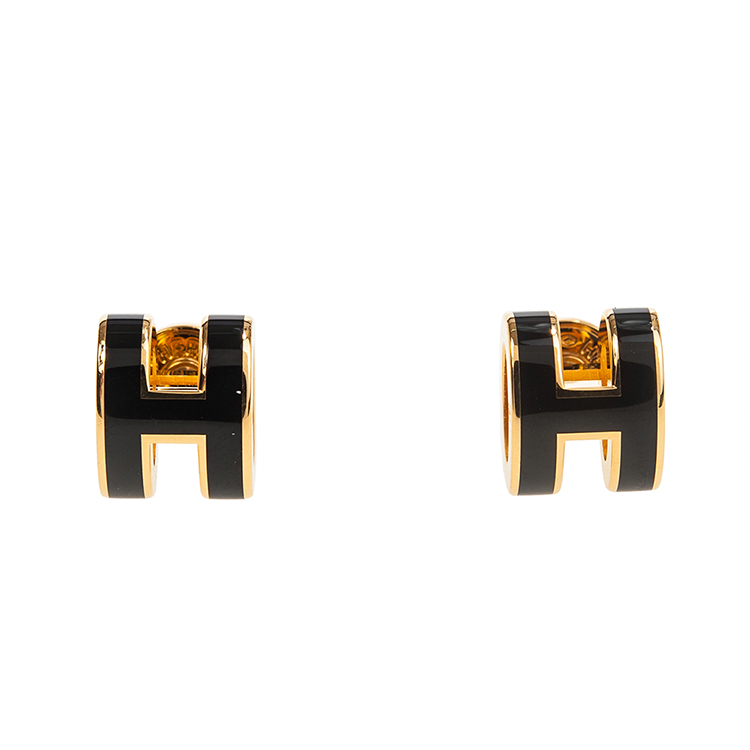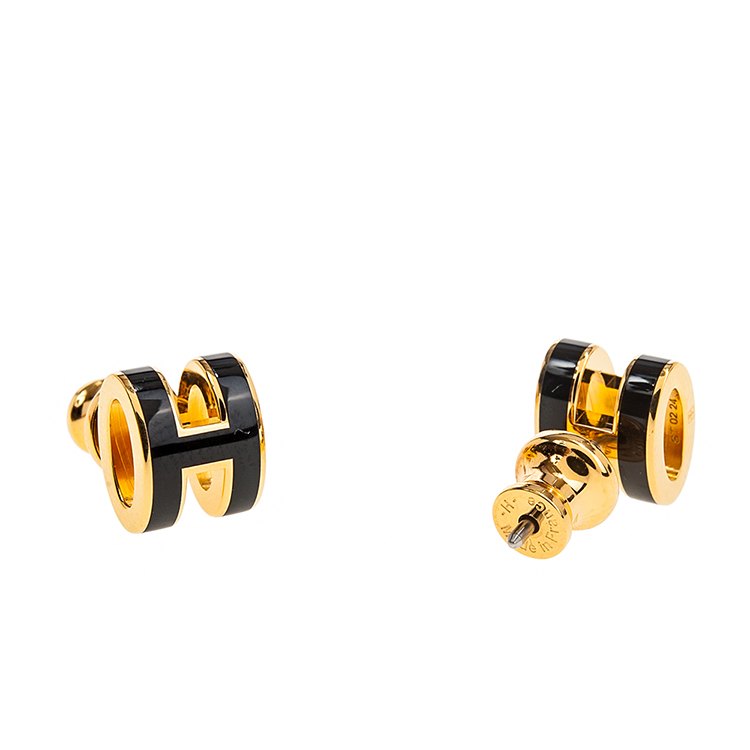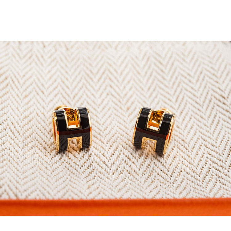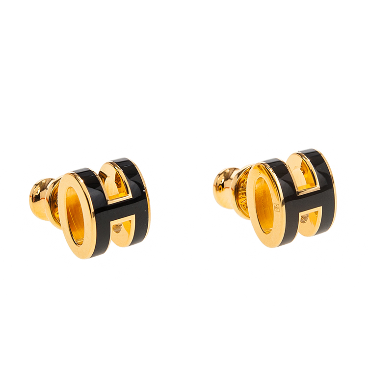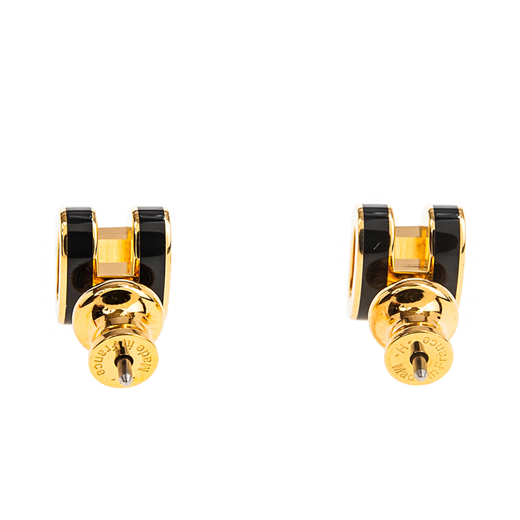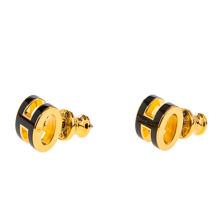 HERMES 愛馬仕 經典Pop H立體簍空橢圓LOGO耳環 (小/黑色/淺金)