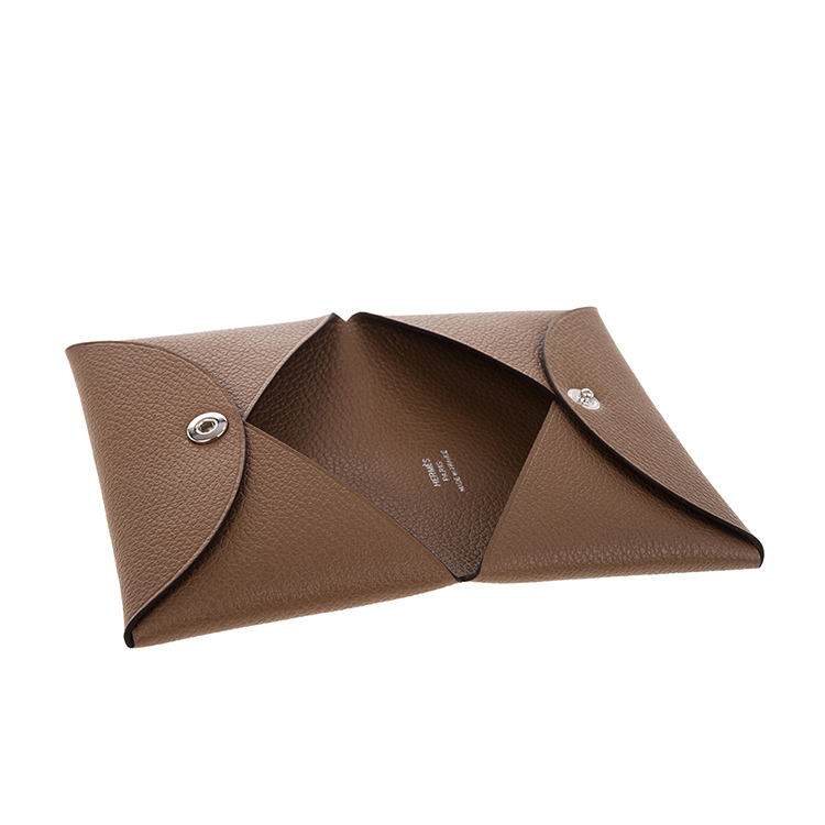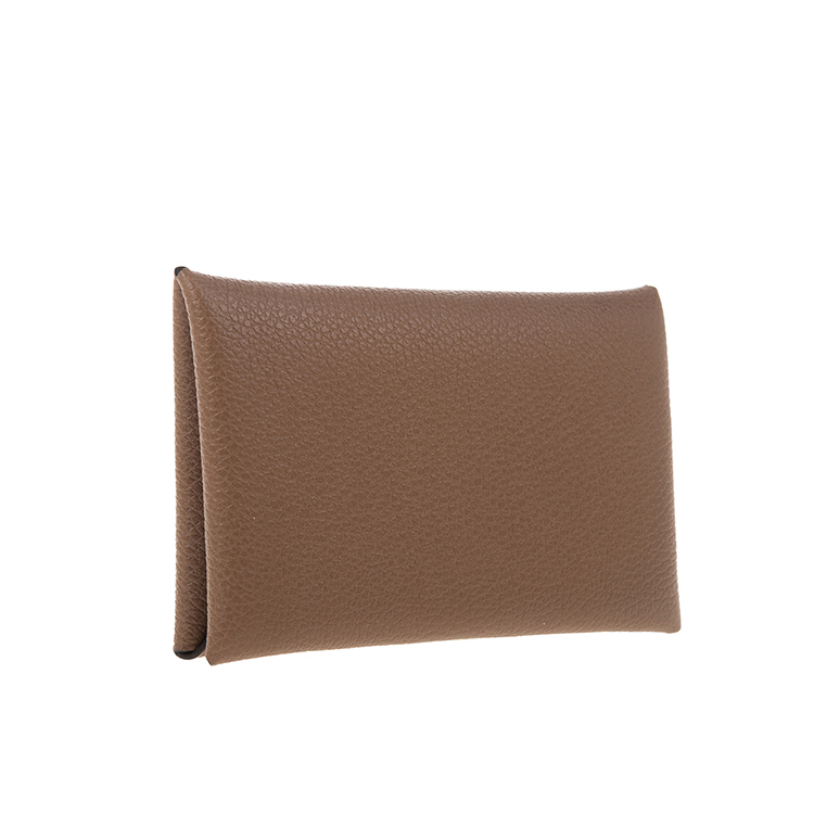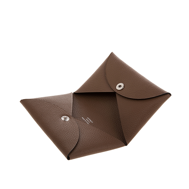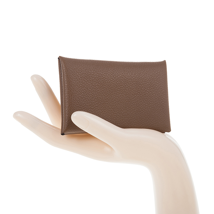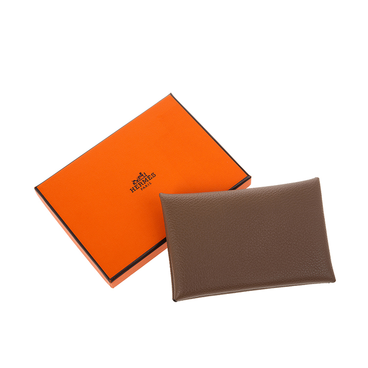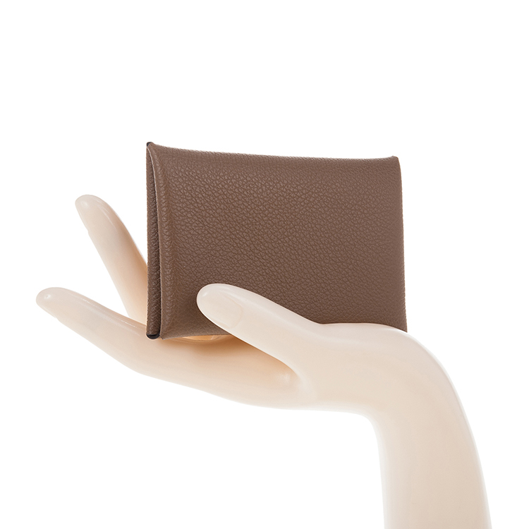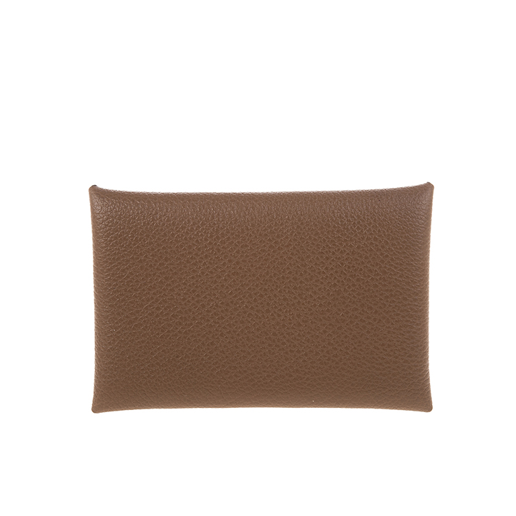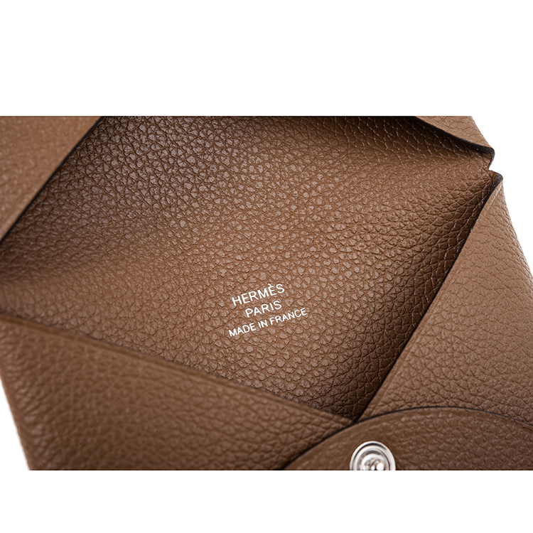 HERMES 經典calvi EPSOM牛皮折疊名片/零錢包 (灰褐色)