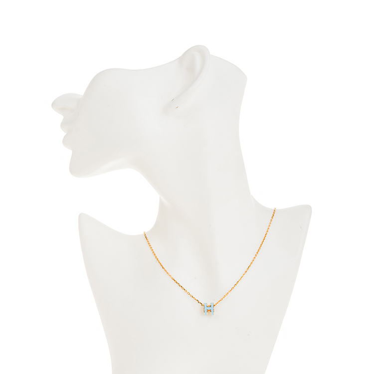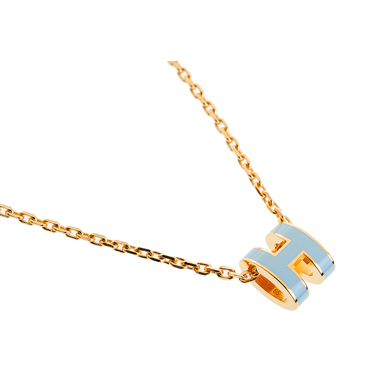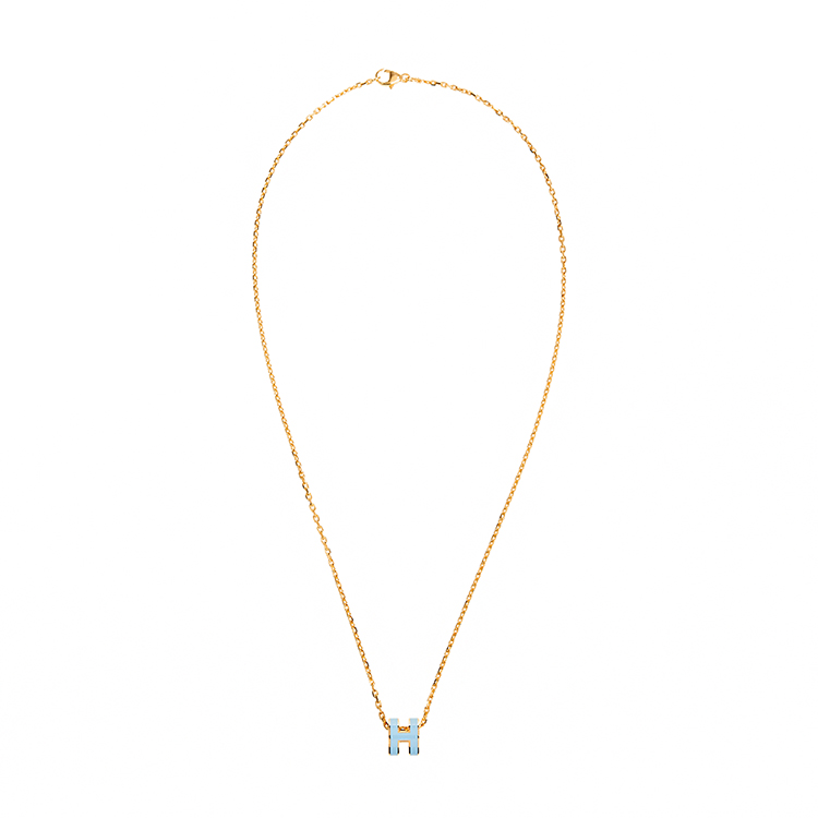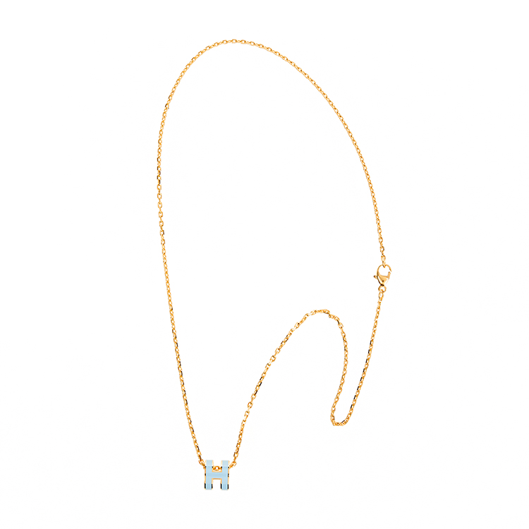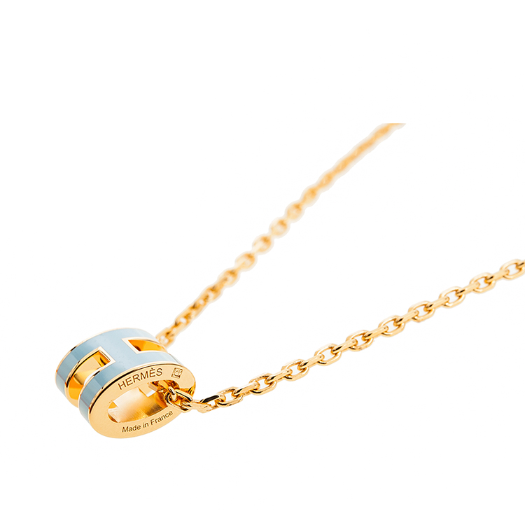 HERMES 經典Mini Pop H pendant 立體橢圓簍空項鍊(BLEU POLATRE/淺金)