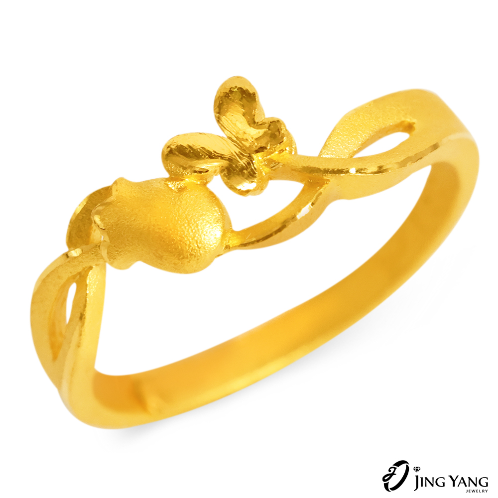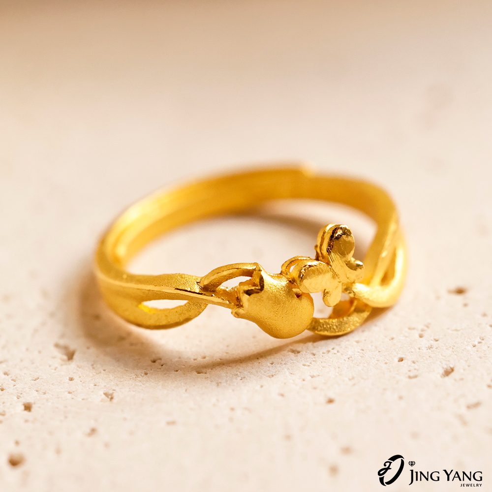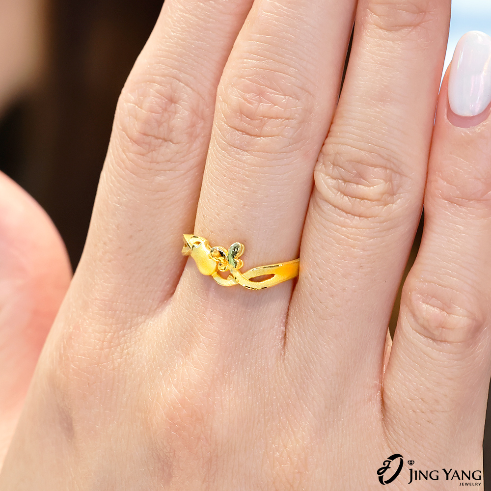 黃金女戒指-郁金香與蝴蝶