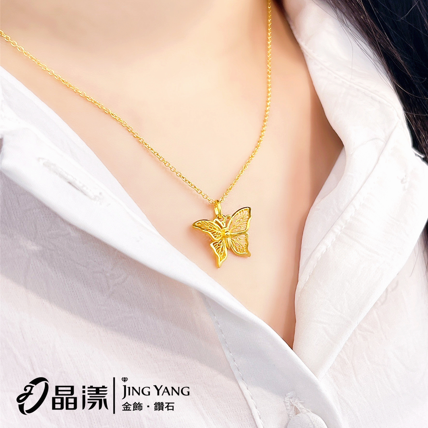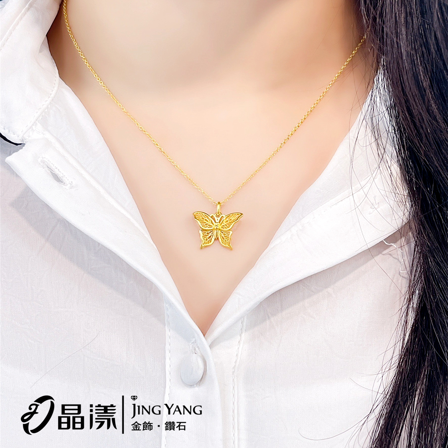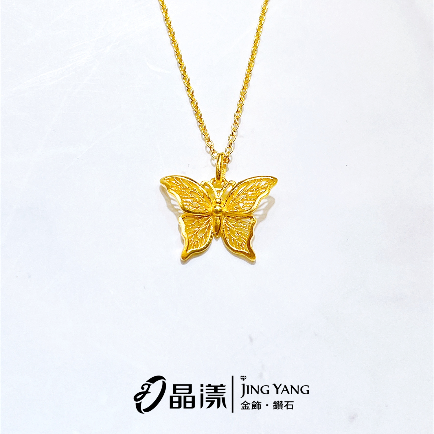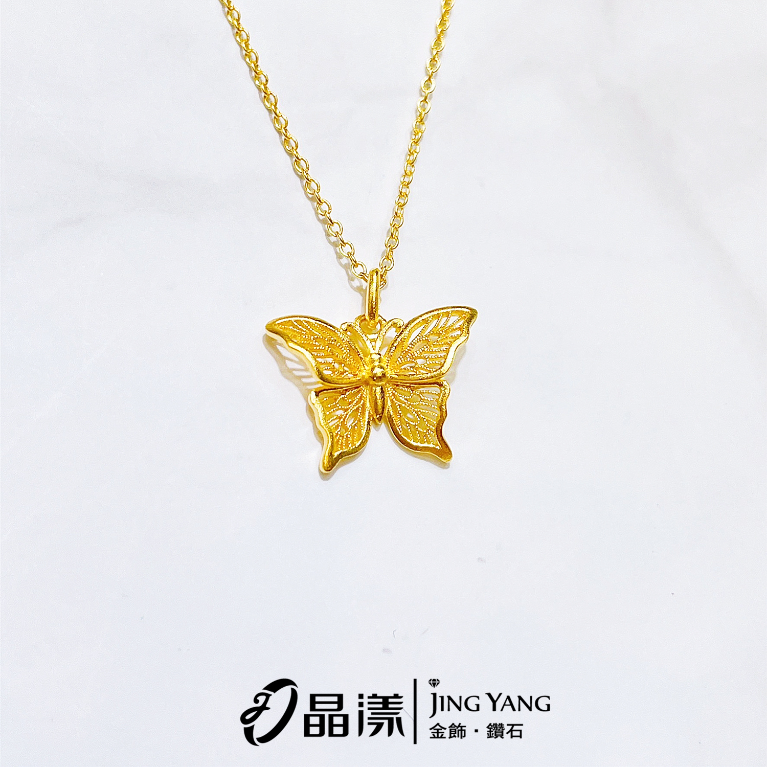 黃金女項鍊-古法金簍空蝴蝶