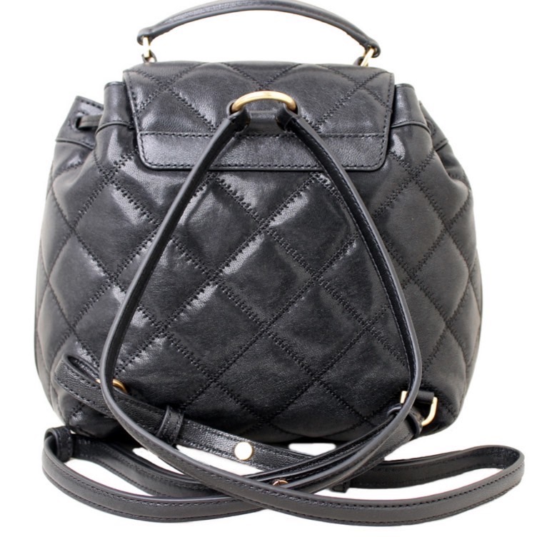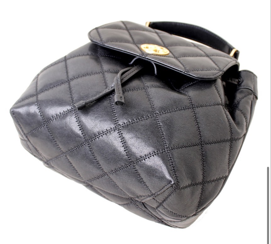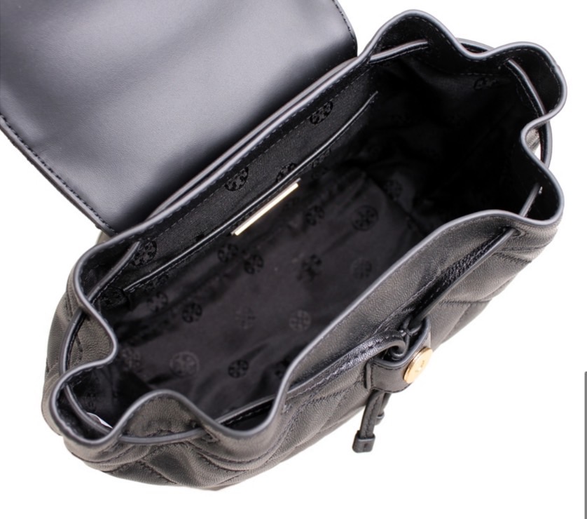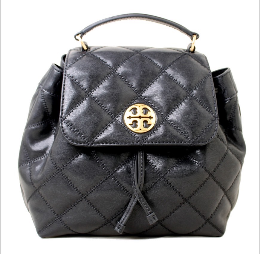 【TORY BURCH】WILLA 專櫃款圓牌LOGO小香風菱格紋後背包(黑) 尺寸-長:底長約25cm 尺寸-寬:底寬約12cm 尺寸-高:約24.5cm