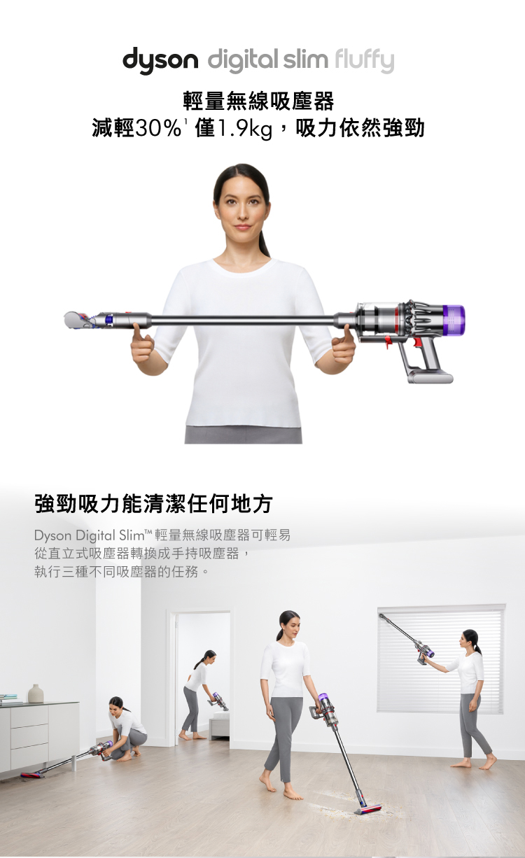 - 全新輕量化吸塵器:全機較過往機種更輕30%、體積更小20%,帶來全新輕盈手感,清潔更方便。